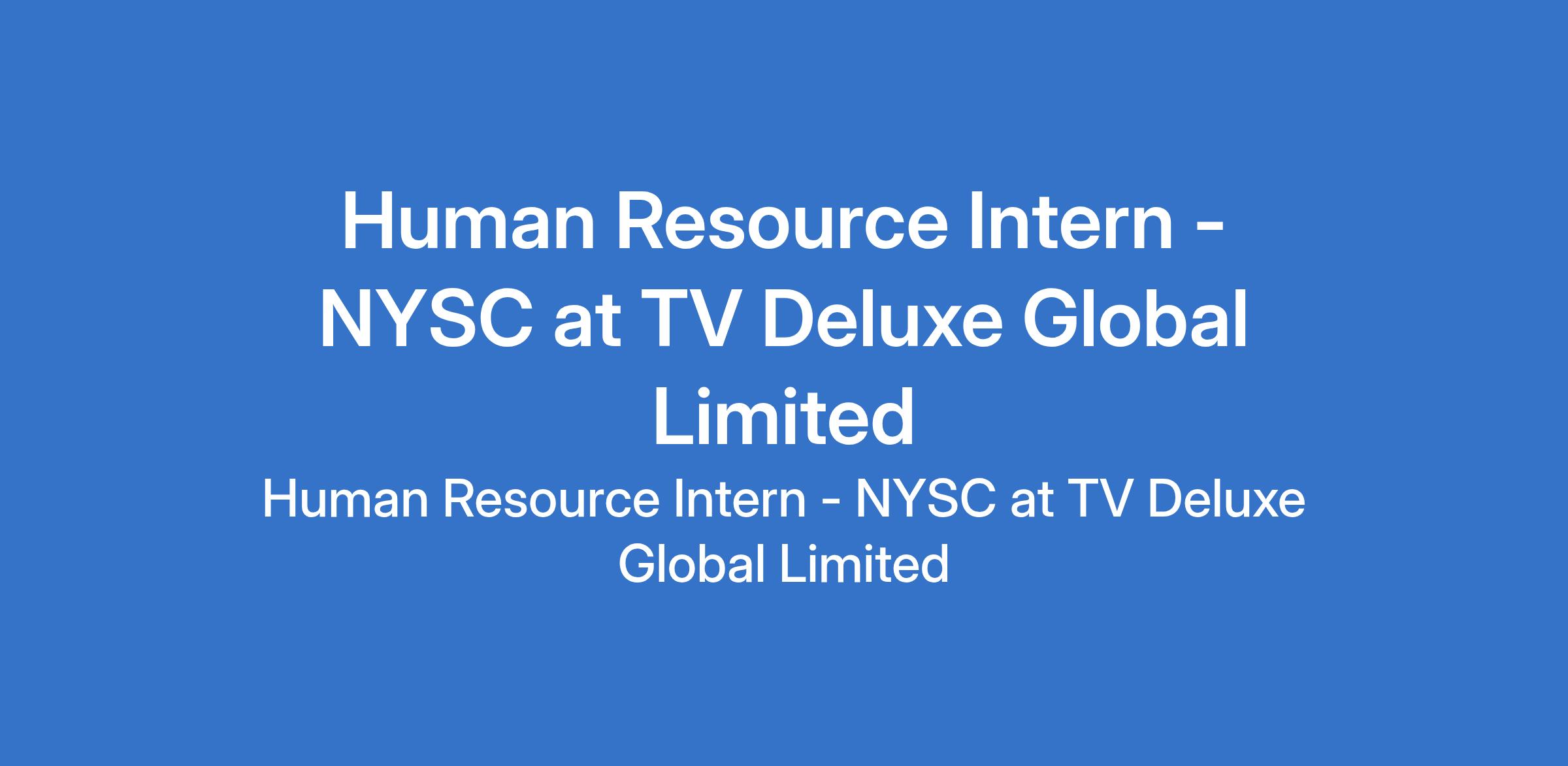 TV Deluxe Global Limited is recruiting to fill the position of: Human Resource Intern - NYSC. The position is located in Surulere, Lagos State. Interested candidates should be an undergraduate or recent graduate in Human Resources, Business Administration, Psychology, or a related field.
