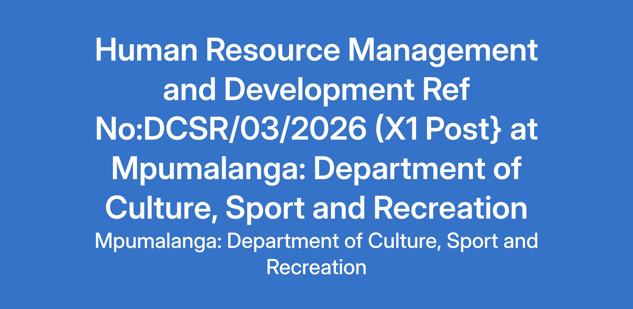 Human Resource Management and Development Ref No:DCSR/03/2026 (X1 Post} at Mpumalanga: Department of Culture, Sport and Recreation