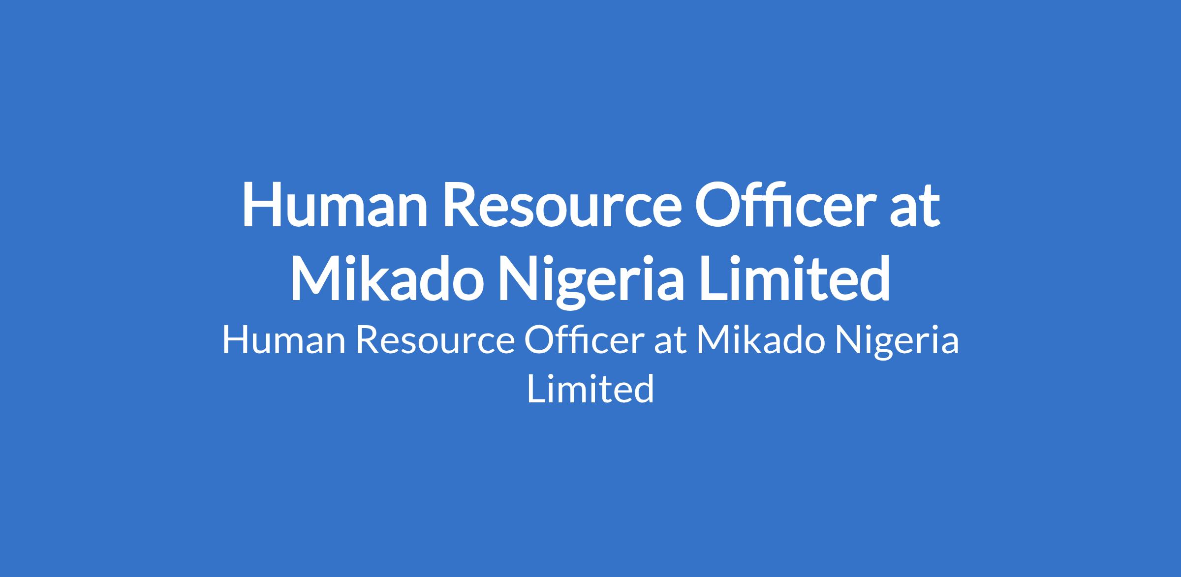 Mikado Nigeria Limited is recruiting to fill the position of: Human Resource Officer. The position is located in Ogudu, Lagos State. Interested candidates should possess a Bachelors Degree in Human Resources, Business Administration, or related field with 2 3 years proven experience in HR and administrative roles.