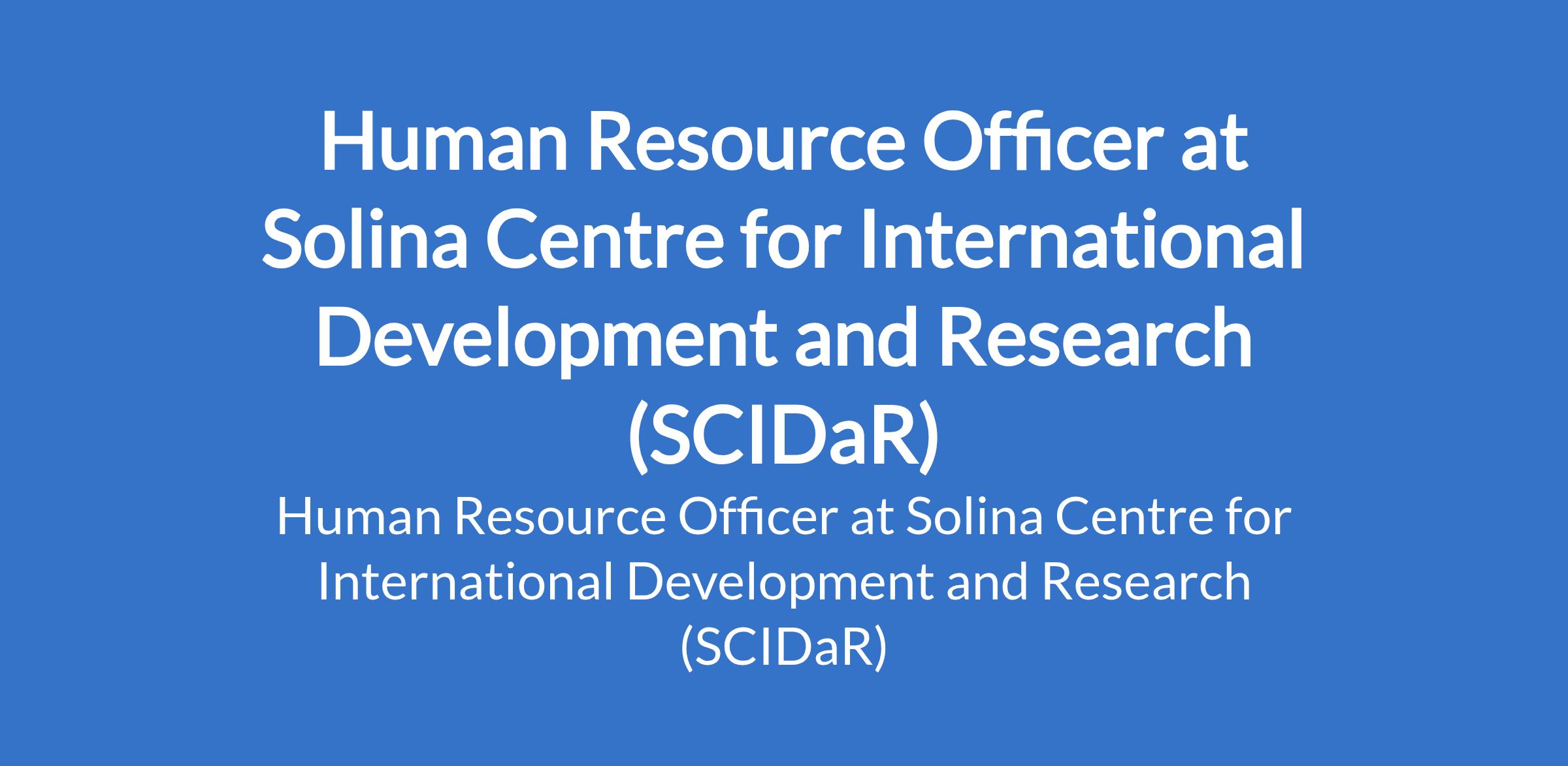 Solina Centre for International Development and Research (SCIDaR) is recruiting to fill the position of: Human Resource Officer. The position is located in Abuja. Interested candidates should possess a Bachelors Degree (with a minimum of a second-class upper) from an accredited university with 2 - 4 years of progressive HR experience spanning across recruitment, rewards and benefits management, employer branding, and/or HRBP functions.