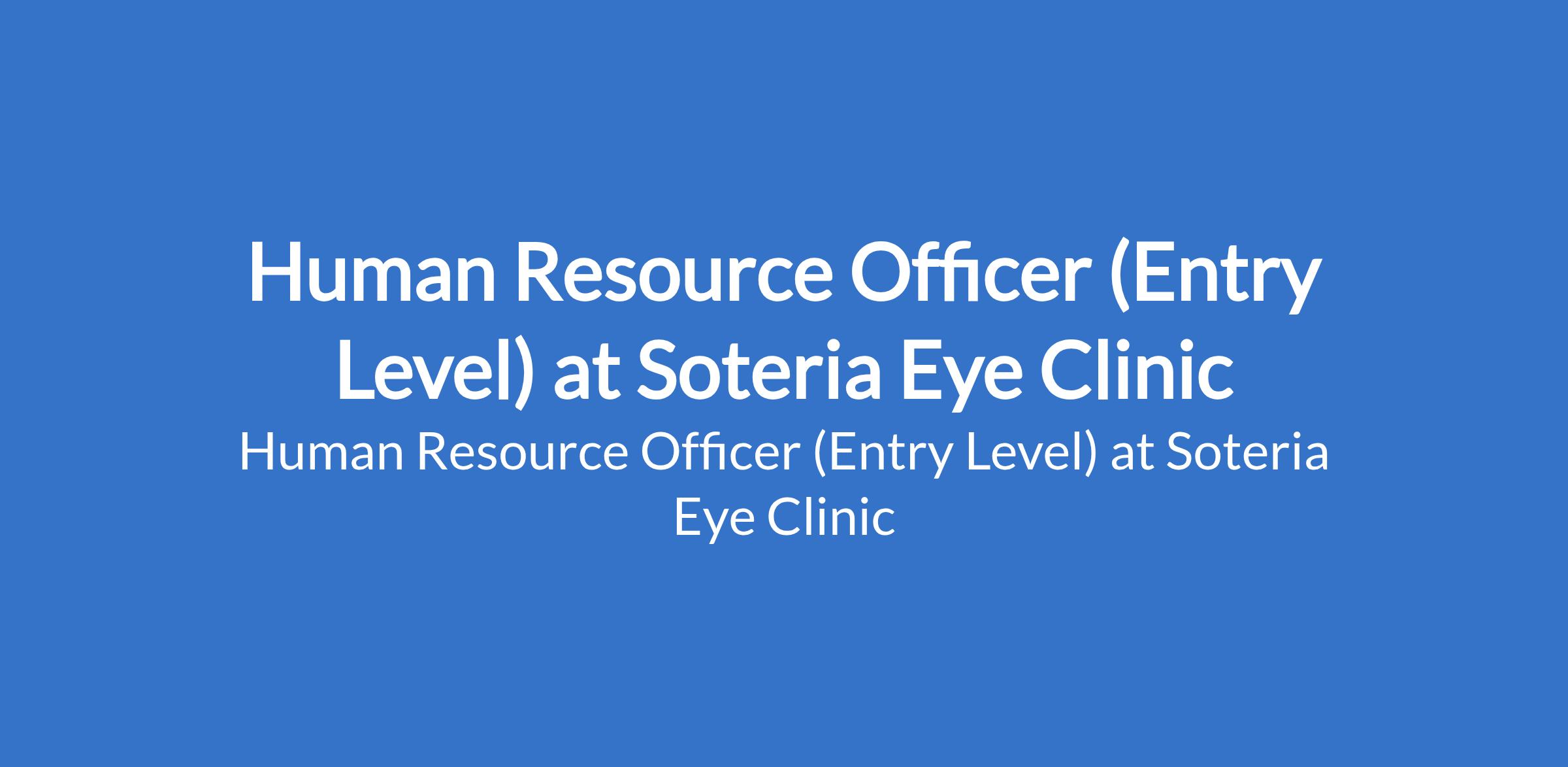 Human Resource Officer (Entry Level) at Soteria Eye Clinic
