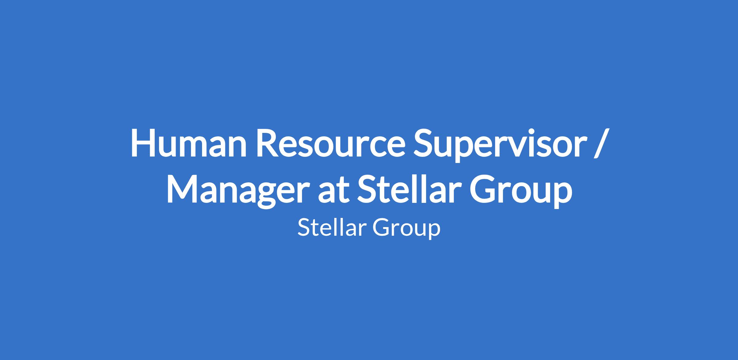 Human Resource Supervisor / Manager at Stellar Group