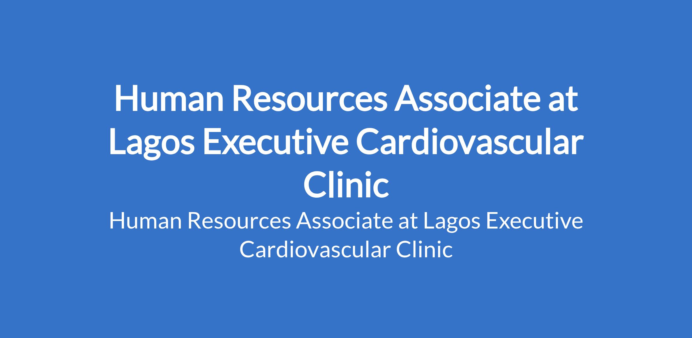 Lagos Executive Cardiovascular Clinic is recruiting to fill the position of: Human Resources Associate. The position is located in Lagos State. Interested candidates should possess a Bachelors Degree in Human Resources, Business Administration, or a related field with 4 years of experience in human resources management, preferably in a healthcare setting.