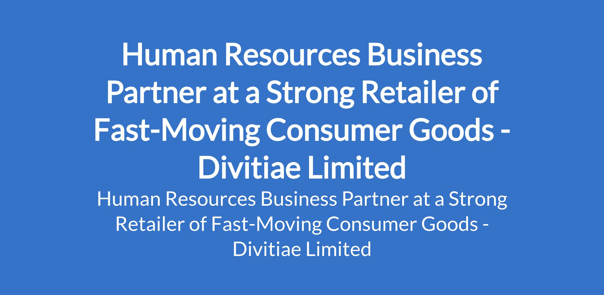 Divitiae Limited - Our client, a strong retailer of fast-moving consumer goods is recruiting to fill the position of: Human Resources Business Partner. The position is located in Mainland, Lagos State. Interested candidates should possess a BSc / HND or its equivalent with 3 years work experience as an HR generalist.