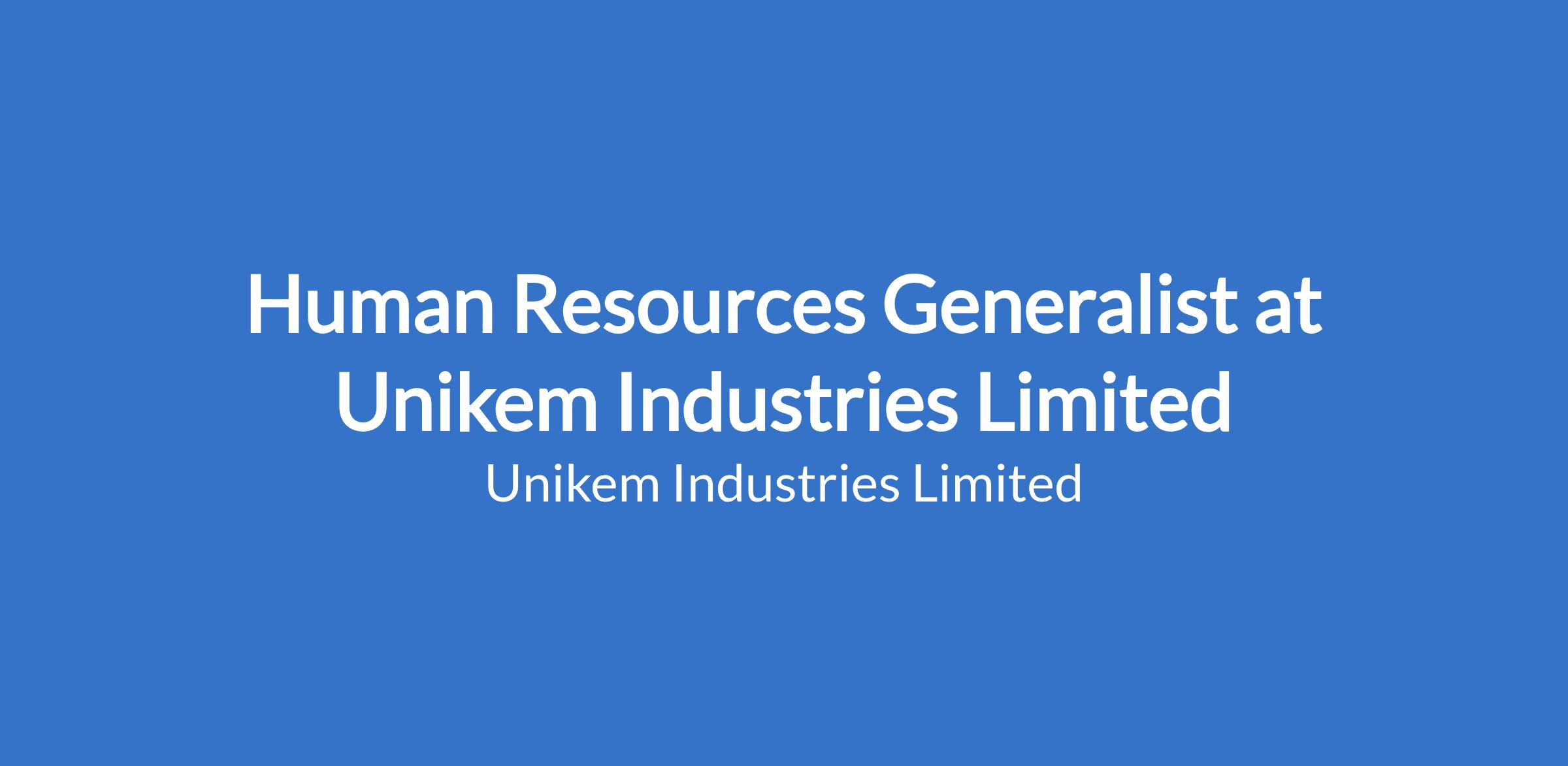 Human Resources Generalist at Unikem Industries Limited