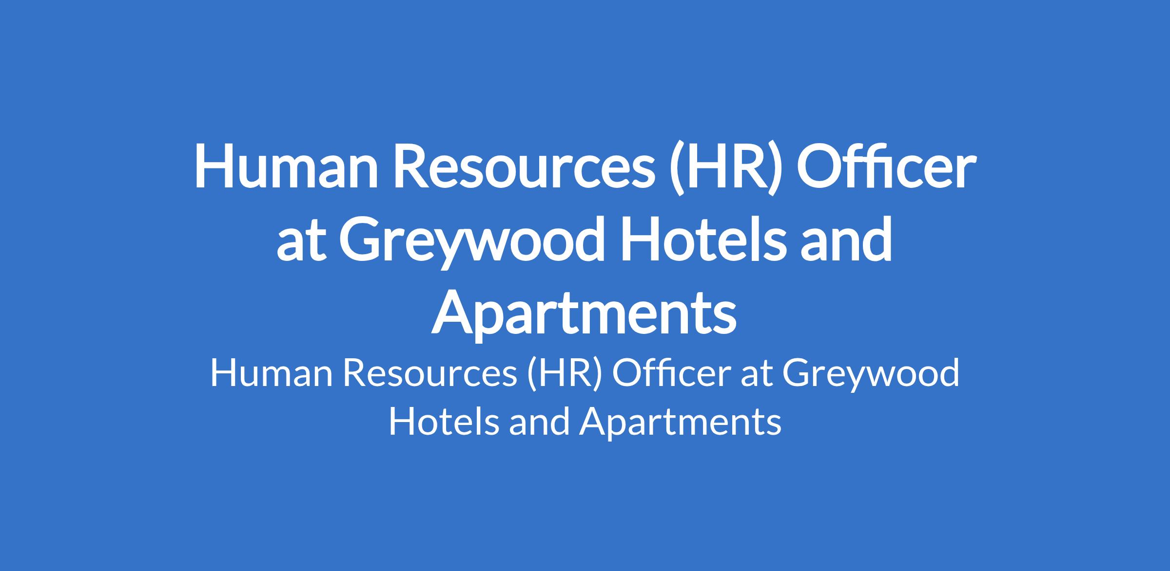 Human Resources (HR) Officer at Greywood Hotels and Apartments