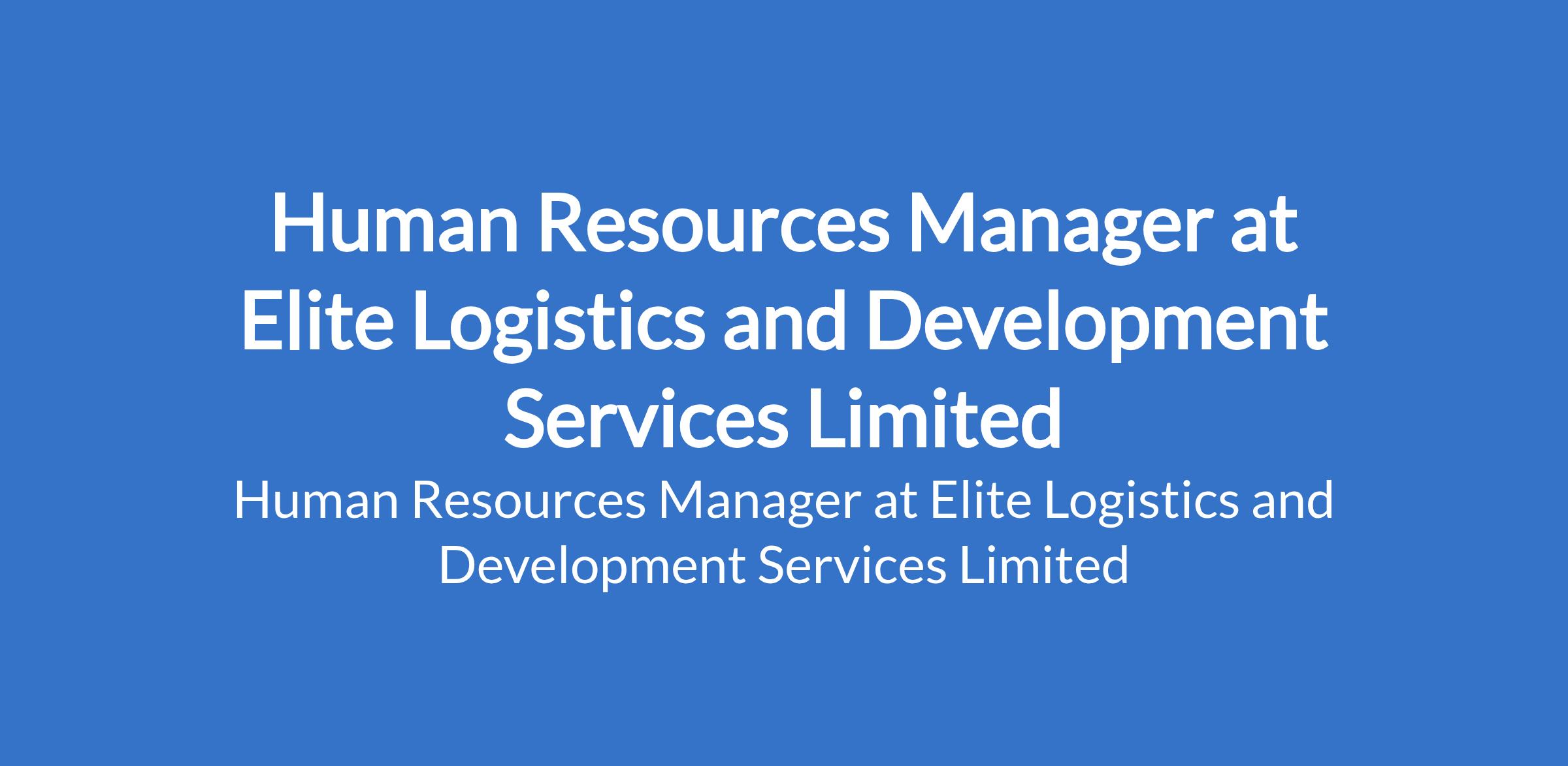 Elite Logistics and Development Services Limited is recruiting to fill the position of: Human Resources Manager. The position is located in Lagos State. Interested candidates should possess a Degree in Human Resources or related fields with proven working experience as HR Manager or other HR Executive.
