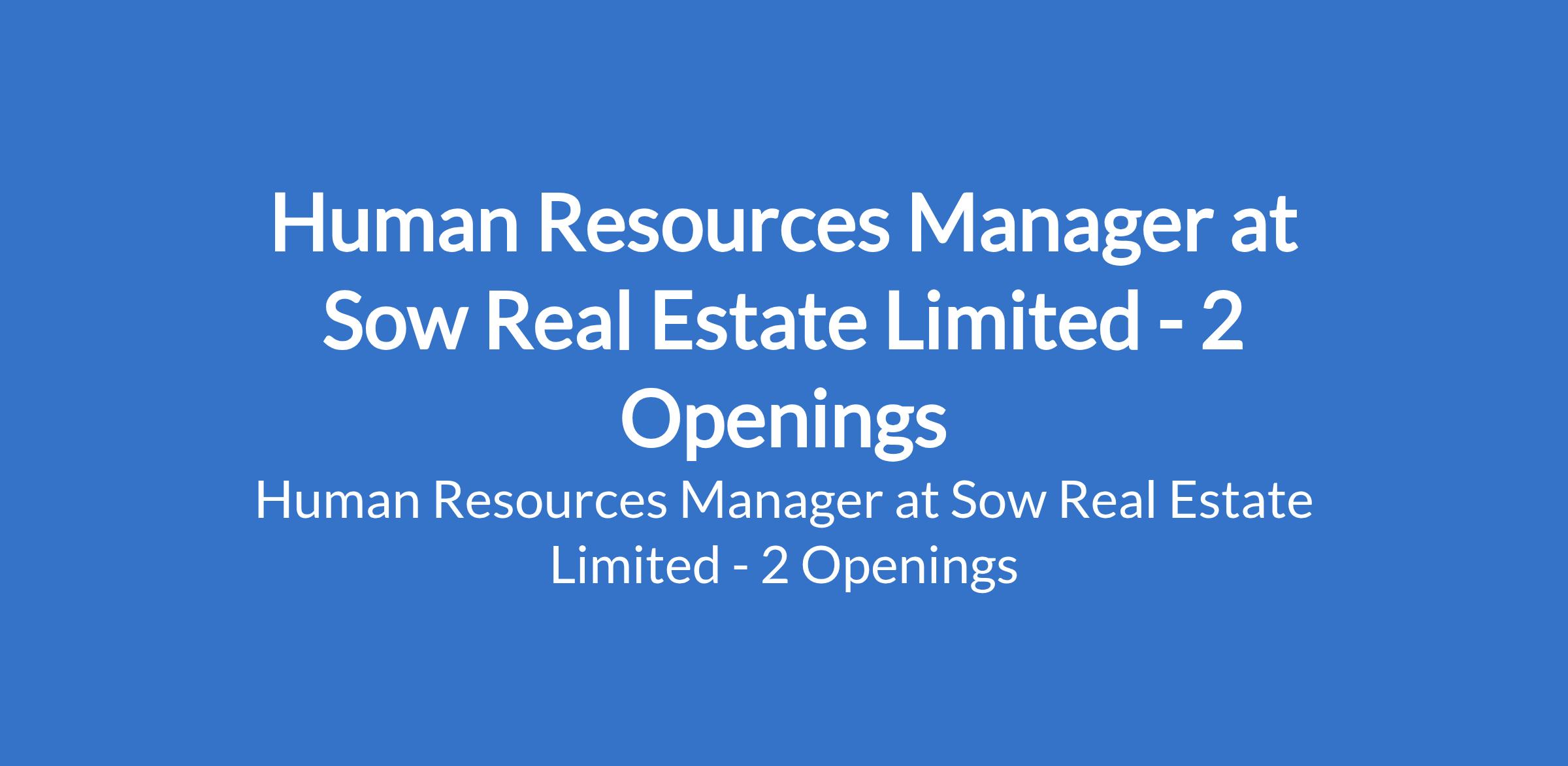Sow Real Estate Limited is recruiting to fill the position of: Human Resources Manager. The position is located in Asokoro - Abuja and Lekki Phase 1 - Lagos State. Interested candidates should possess a relevant qualification with 37 years proven experience in Human Resources roles.