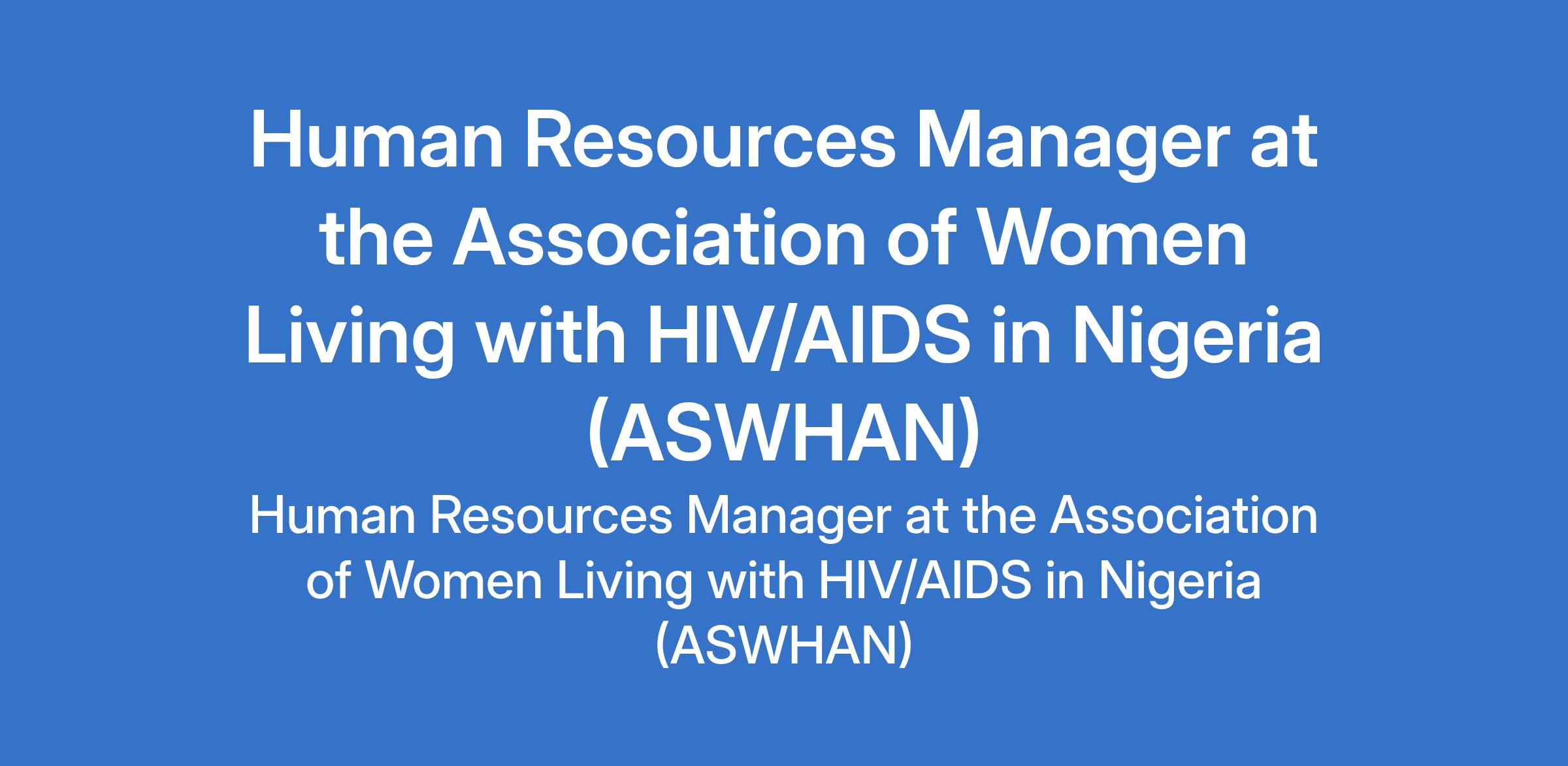 The Association of Women Living with HIV/AIDS in Nigeria (ASWHAN) is recruiting to fill the position of: Human Resources Manager. The position is located in Abuja. Interested candidates should possess a Bachelors degree in Human Resources, Business Administration, or related field with a minimum 7 years HR management experience.