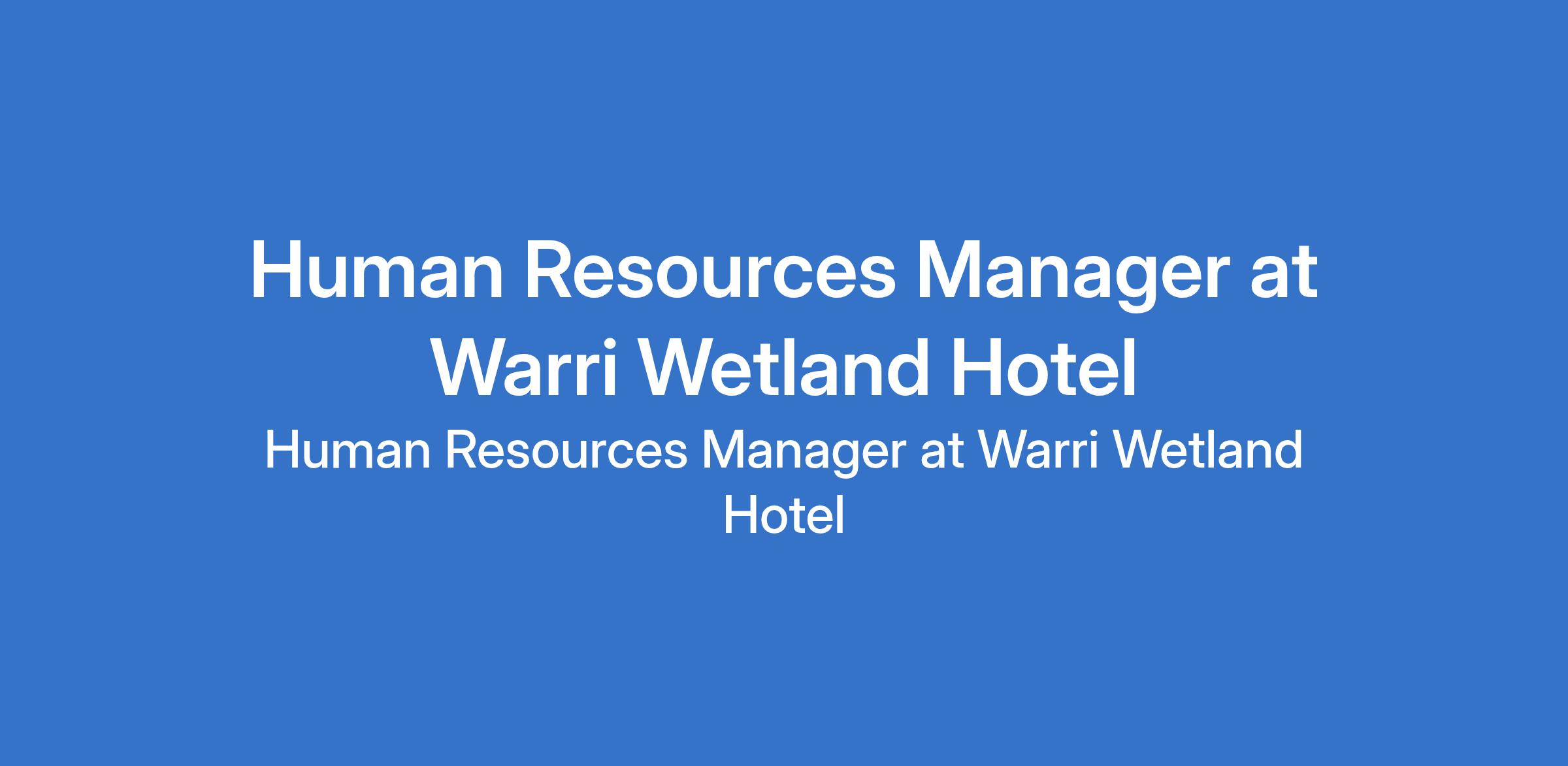 Human Resources Manager at Warri Wetland Hotel