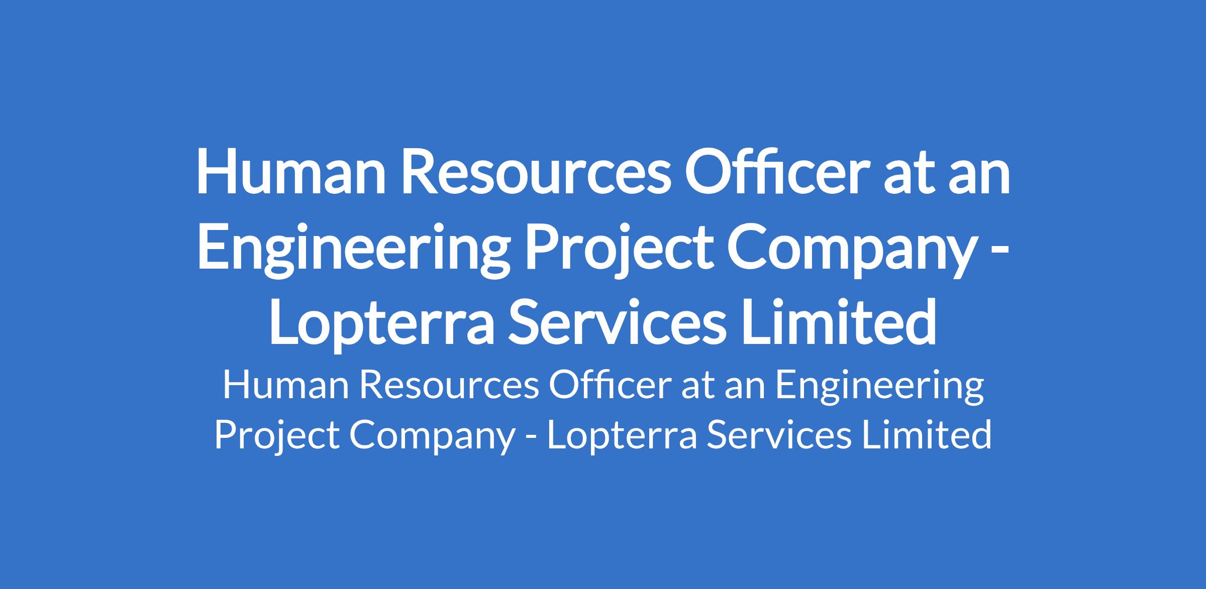 Lopterra Services Limited - Our client, an Engineering Project company is recruiting to fill the position of: Human Resources Officer. The position is located in Ikeja, Lagos State. Salary: N150,000 - N180,000 monthly. Interested candidates should possess a Bachelors Degree in Human Resources, Business Administration, or a related field with 2 - 3 years of hands-on HR experience, preferably in a project-based or technical environment.