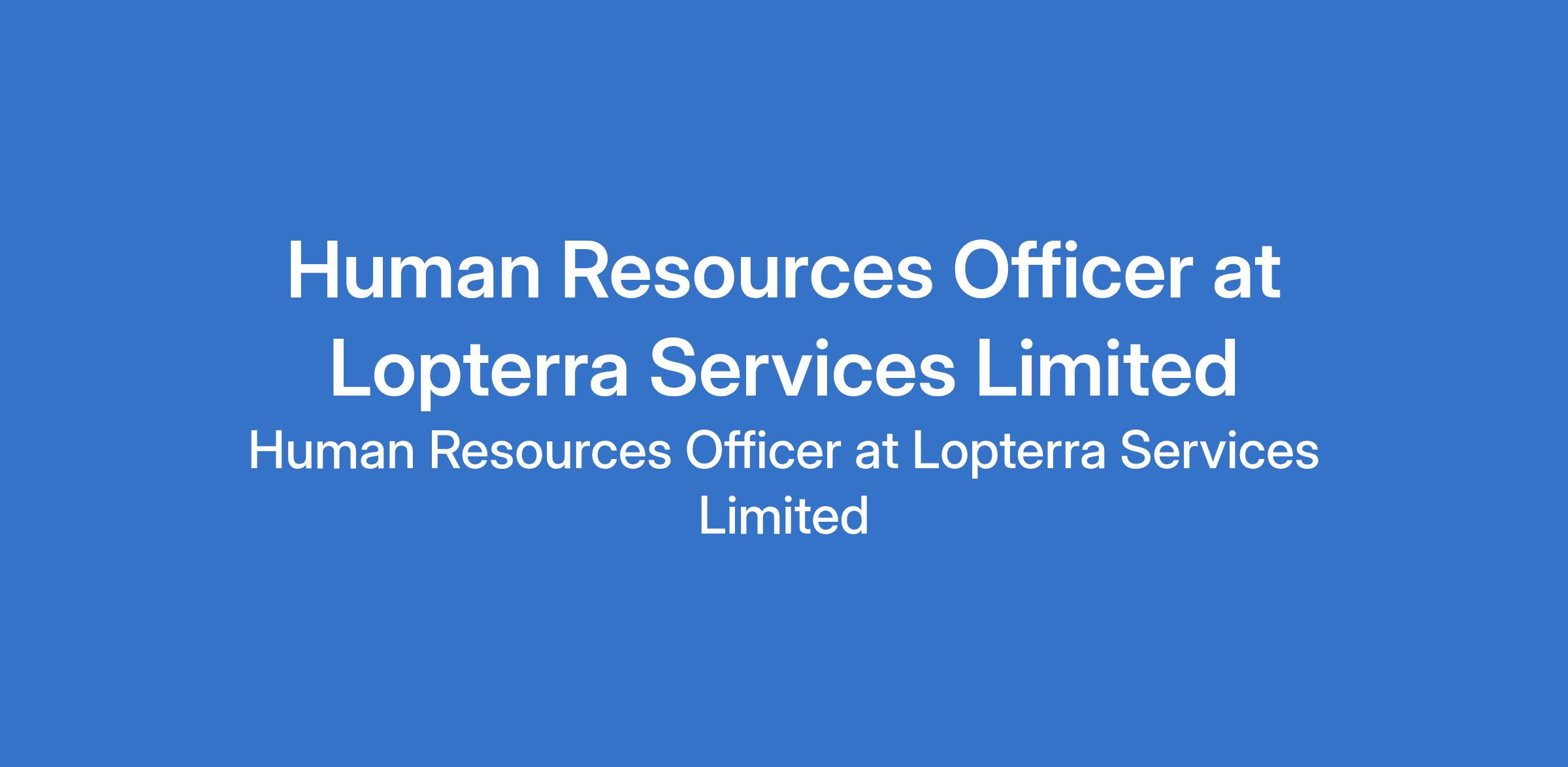 Lopterra Services Limited is recruiting to fill the position of: Human Resources Officer. The position is located in Ikeja, Lagos State. Salary: N150,000 monthly. Interested candidates should possess a Bachelors Degree in Human Resources, Business Administration, or a related field wit 2 3 years of hands-on HR experience, preferably in a project-based or technical environment.