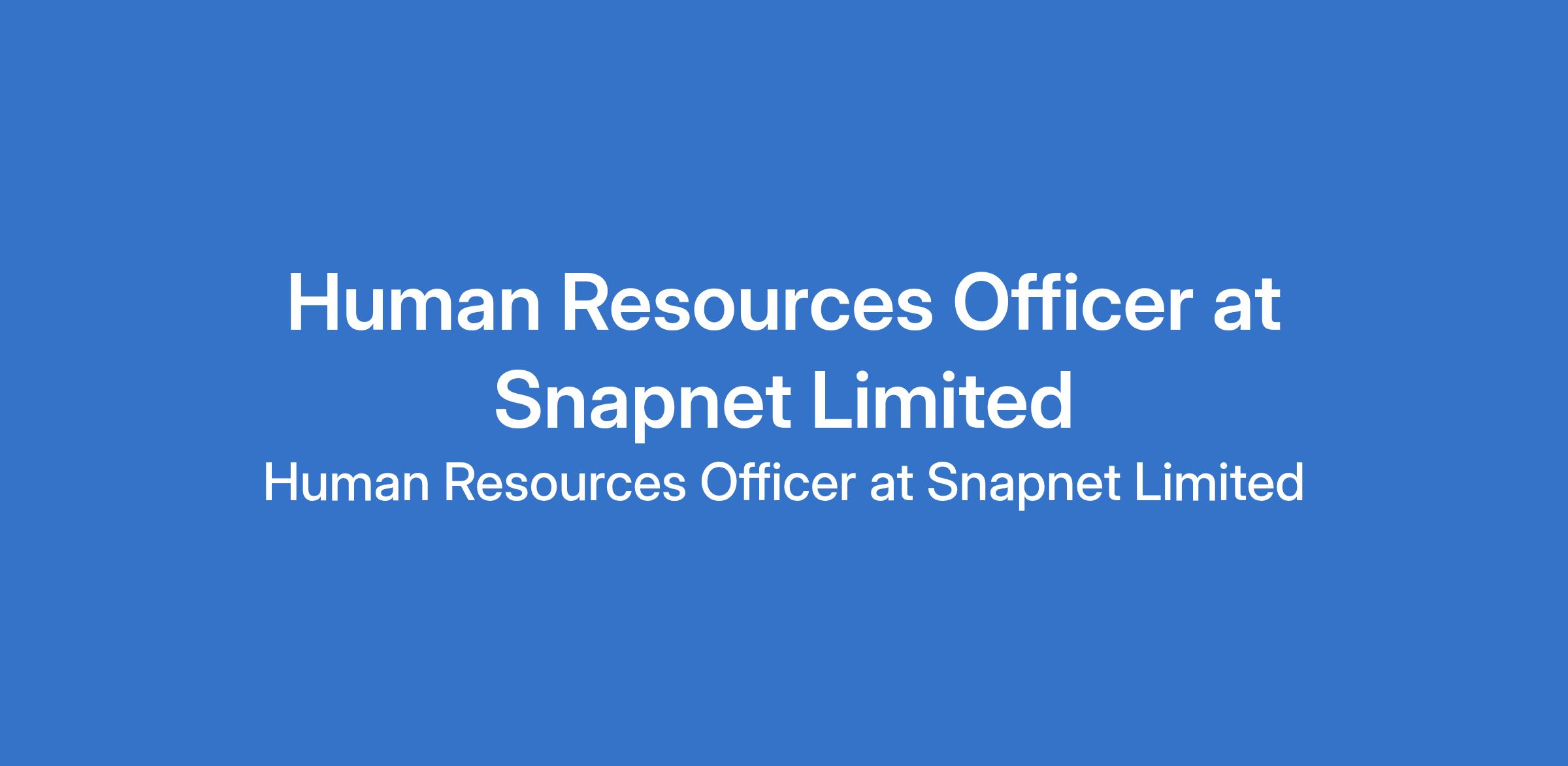 Snapnet Limited is recruiting to fill the position of: Human Resources Officer. The position is located in Lekki, Lagos State. Salary: N200,000 - N250, 000 per month. Interested candidates should possess a First Degree in a Science discipline (Chemistry, Physics, Computer Science, Engineering, Mathematics, or related fields) with 23 years of practical recruitment experience (not internship only).