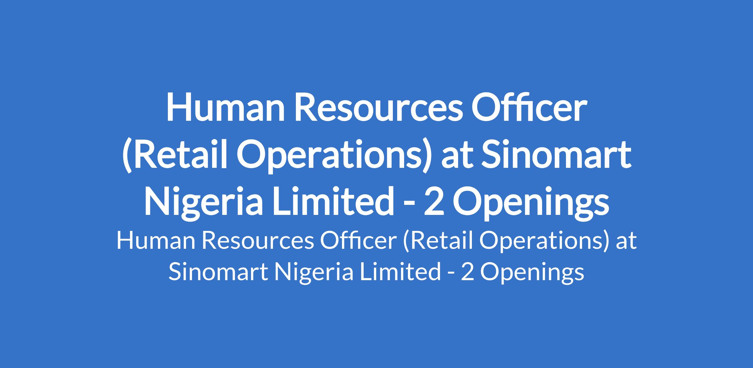 Sinomart Nigeria Limited is recruiting to fill the position of: Human Resources Officer (Retail Operations). The position is located in Victoria Island - Lagos and Ota - Ogun States. Salary: N300,000 - N350,000 monthly. Interested candidates should possess a Bachelors Degree in Human Resources, Business Administration, or related fields with 35 years HR experience, preferably within a retail or FMCG environment.
