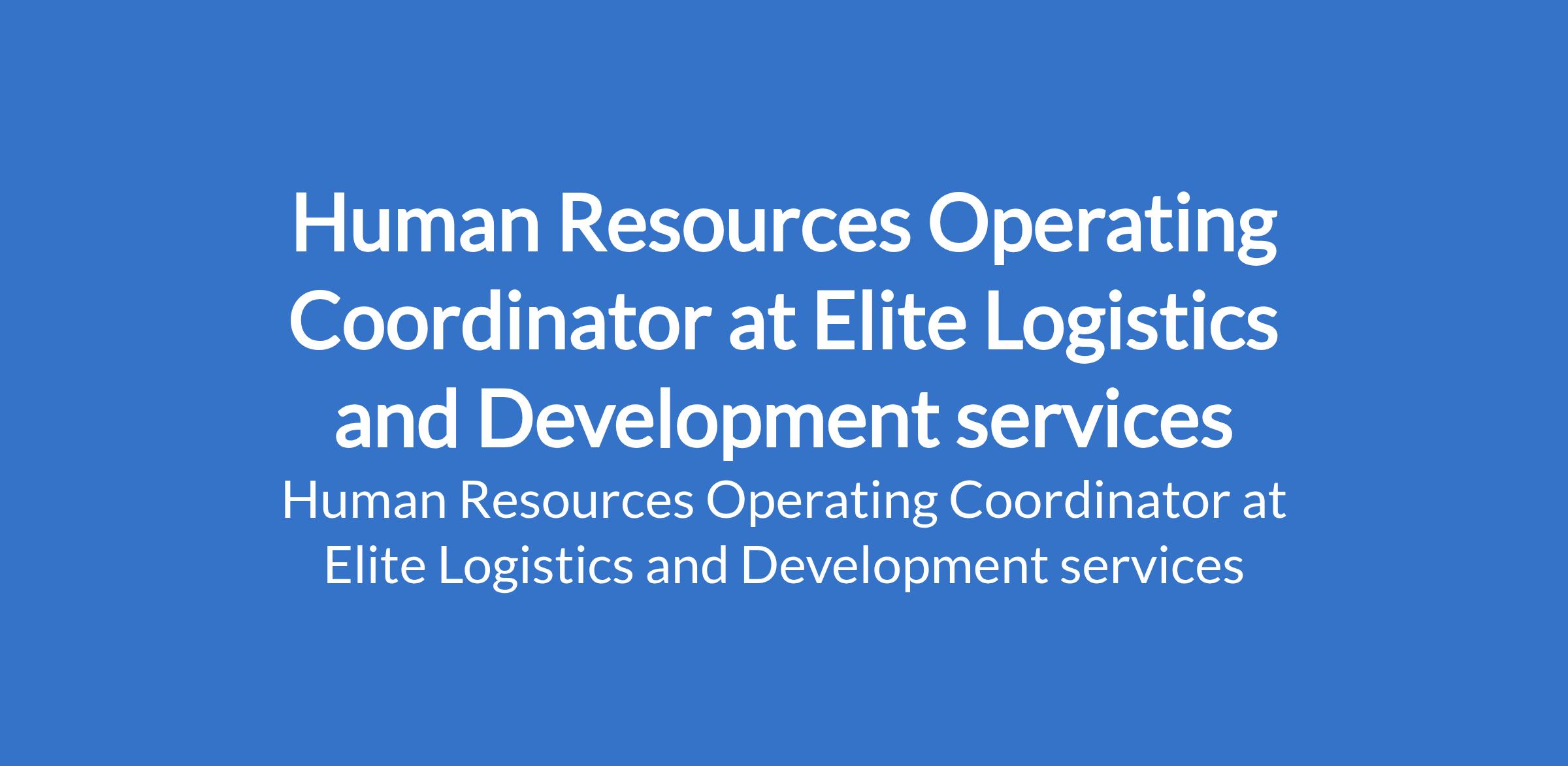 Elite Logistics and Development services is recruiting to fill the position of: Human Resource Operating Coordinator. The position is located in Lagos State. Salary: N120,000 - N180,000 per month. Interested candidates should possess a B.Sc / BA in Business Administration or relevant field; additional education in Human Resource Management will be a plus.