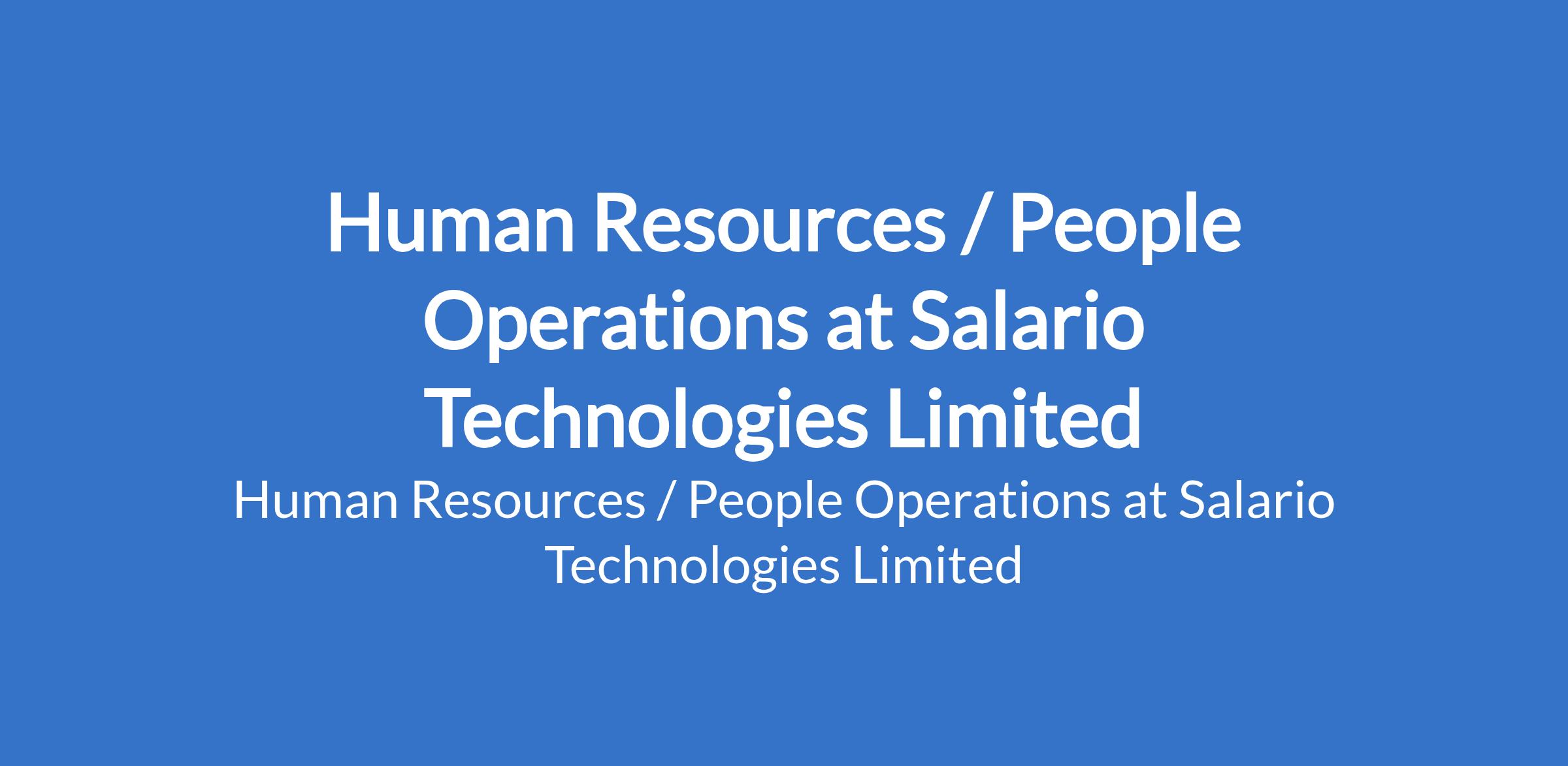Salario Technologies Limited is recruiting to fill the position of: Human Resources / People Operations. Interested candidates should possess a Bachelors Degree in Human Resources, Business Administration, or a related field; Professional HR certification (CIPM, SHRM, HRCI, or equivalent) is a strong advantage with 38 years of HR experience, preferably in fintech, tech, startup, or high-growth environments.