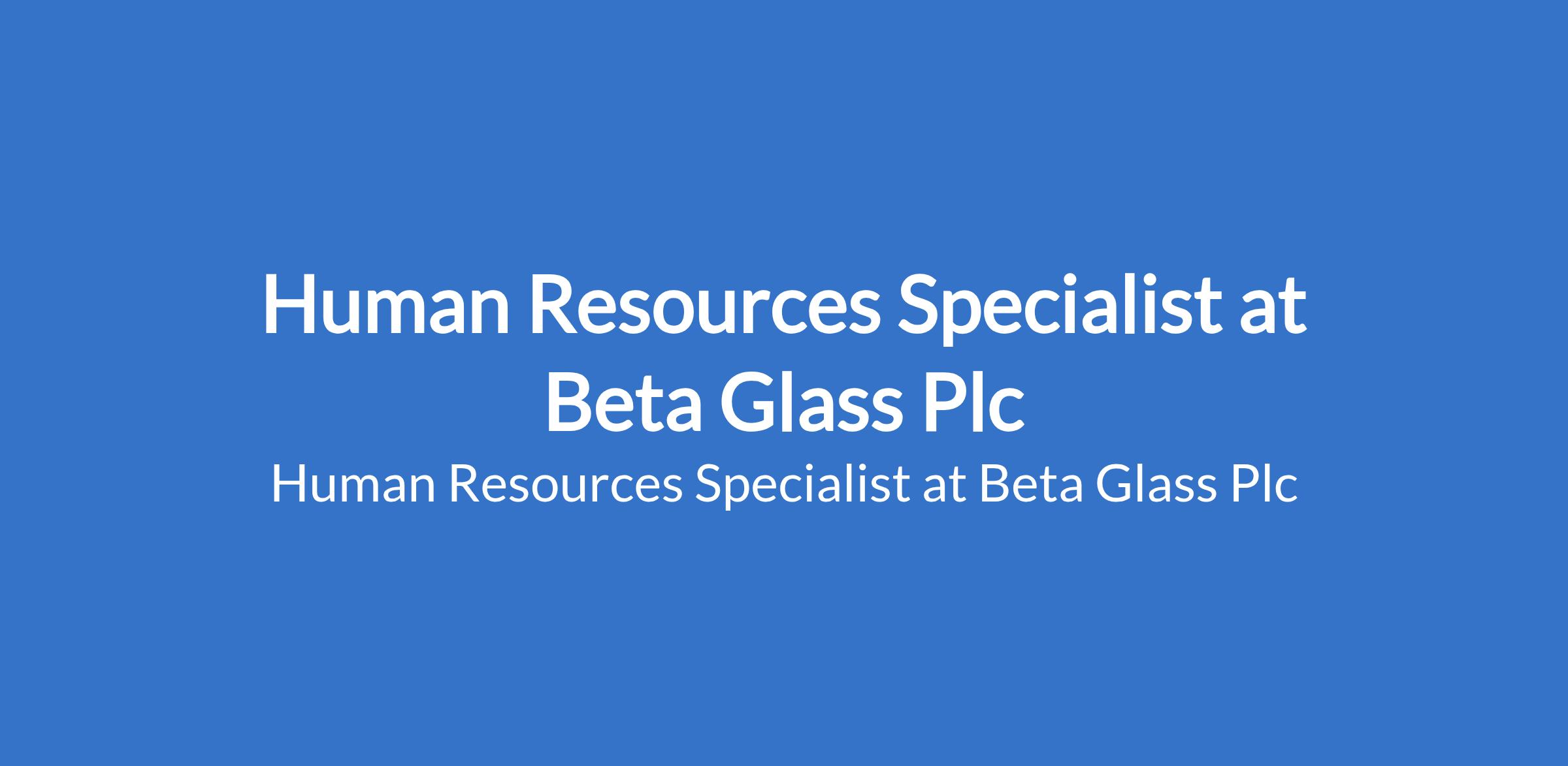 Beta Glass Plc is recruiting to fill the position of: Human Resources Specialist. The position is located in Lagos State. Interested candidates should possess a Bachelor's Degree or Higher National Diploma (HND) in Human Resources, Business Administration, or other related fields with 1 - 3 years experience in a similar role.