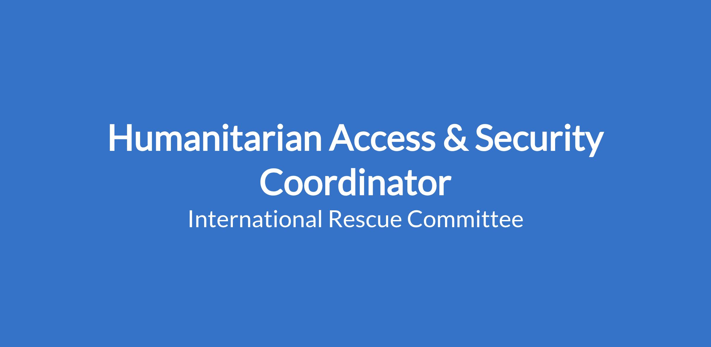 IRC Chad currently seeking a Humanitarian Access & Security Coordinator (HASC). The HASC will be responsible for ensuring the organization's security policies are responsive to the context, advising on humanitarian access, analyzing security trends, and managing a team of security professionals.