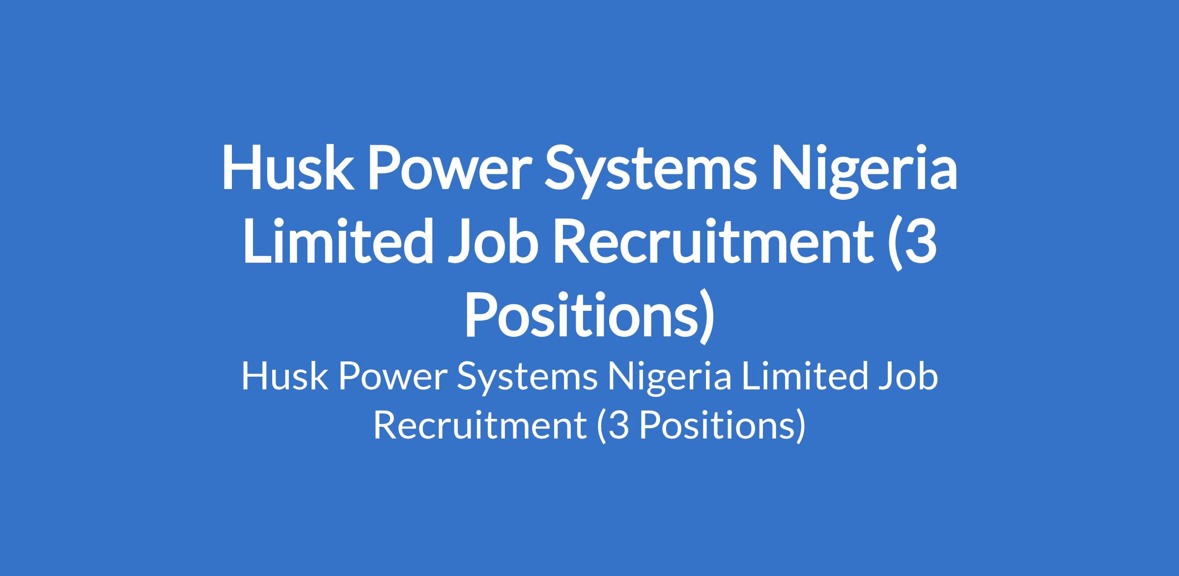 Husk Power Systems Nigeria Limited Job Recruitment (3 Positions)