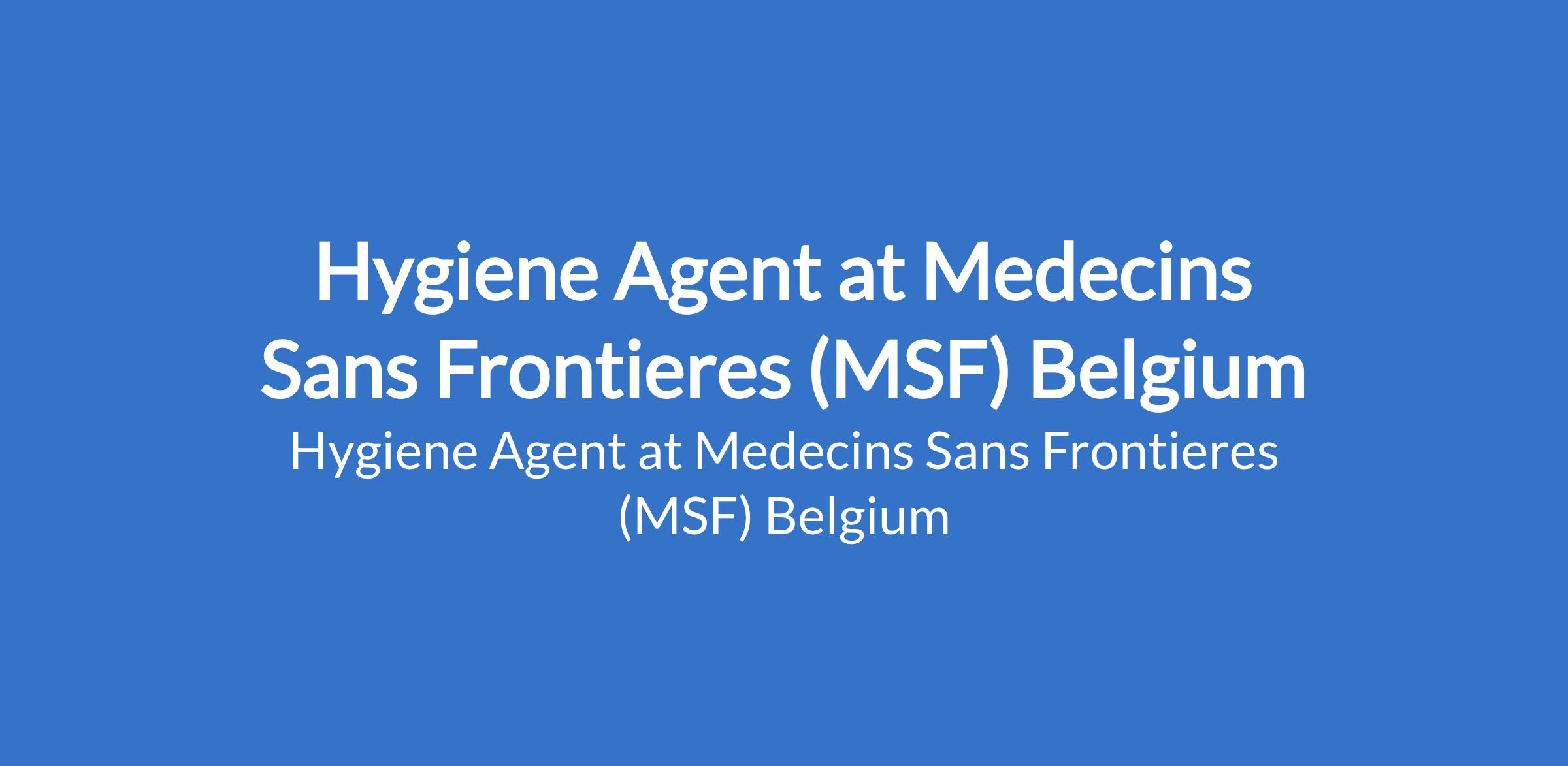 Hygiene Agent at Medecins Sans Frontieres (MSF) Belgium