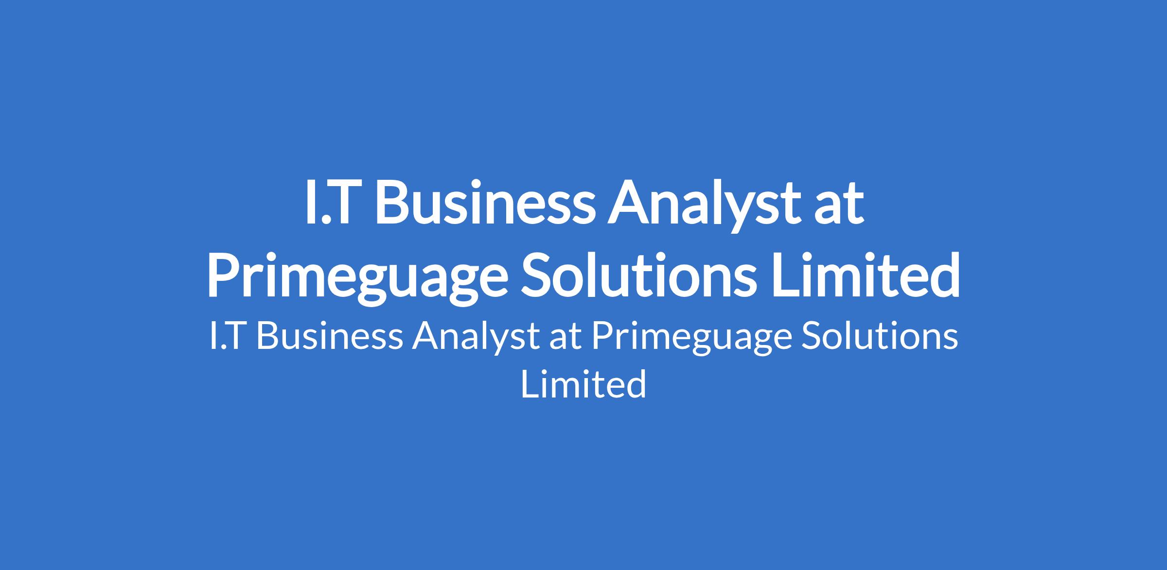 Primeguage Solutions Limited is recruiting to fill the position of: I.T Business Analyst. The position is located in Abuja (FCT). Salary: N200,000 - N300,000 monthly. Interested candidates should possess a Degree in IT / Computer Science or any related discipline with 5 - 7 years experience in IT Business / Quality Analysis.