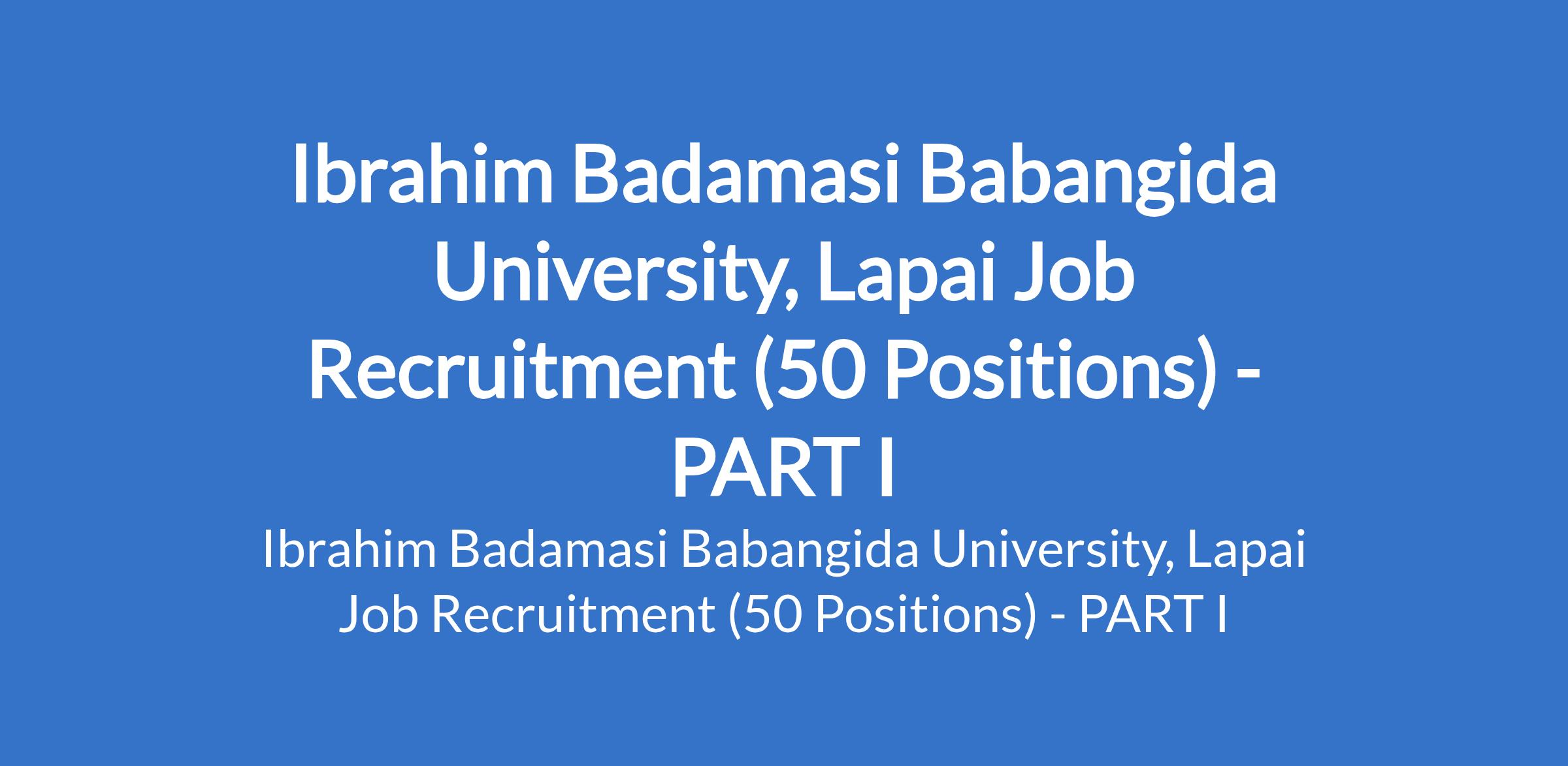 Ibrahim Badamasi Babangida University, Lapai Job Recruitment (50 Positions) - PART I