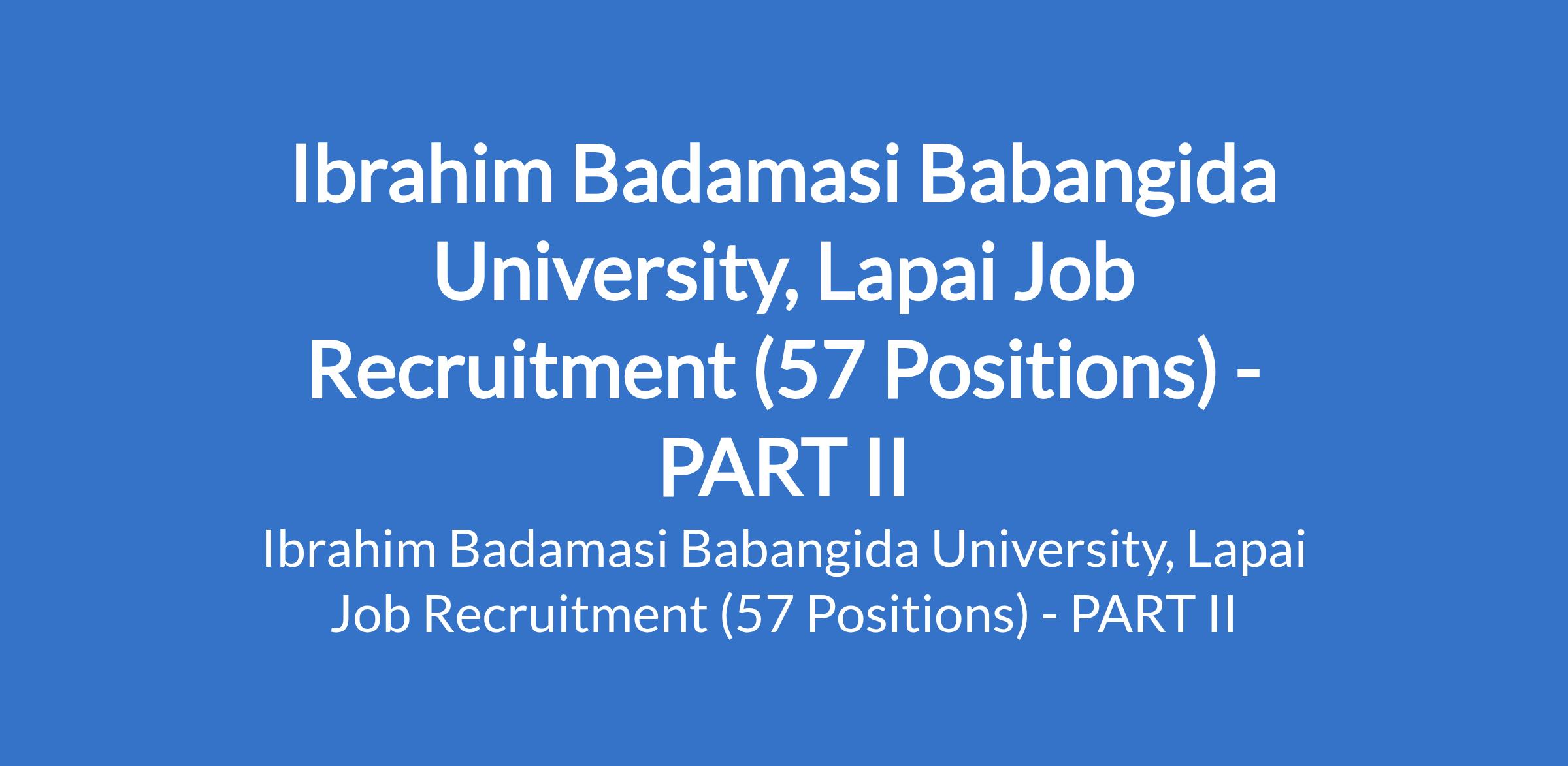 Ibrahim Badamasi Babangida University, Lapai Job Recruitment (57 Positions) - PART II