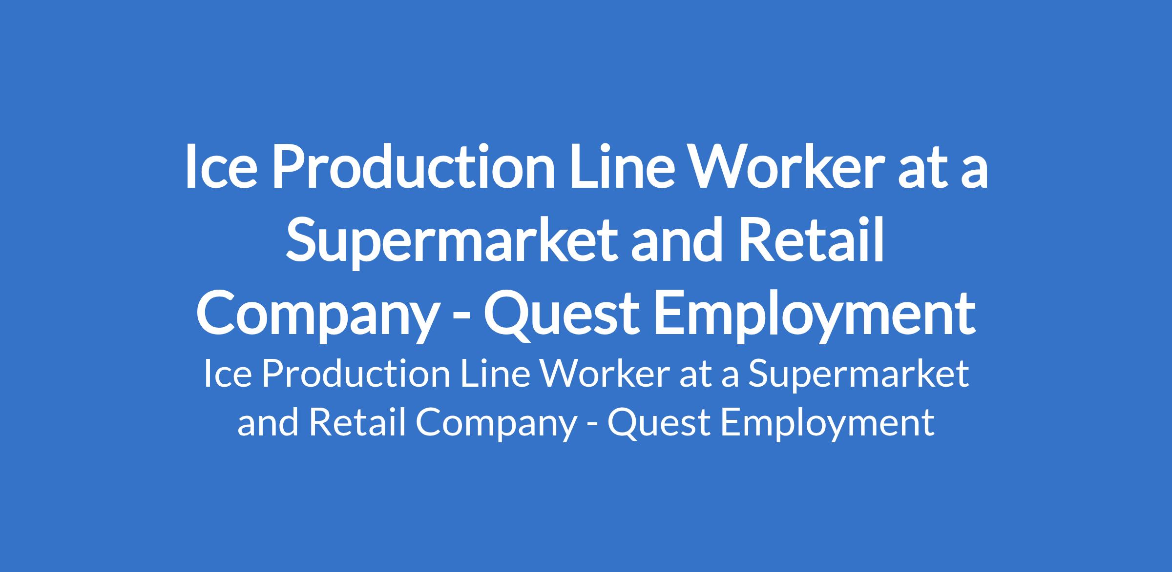 Quest Employment - Our client, one of the leading names in the supermarket and retail industry is recruiting to fill the position of: Ice Production Line Worker. The position is located in Lekki Phase 1, Lagos State. Salary: N100,000 - N200,000 monthly. Interested candidates should possess relevant qualifications.