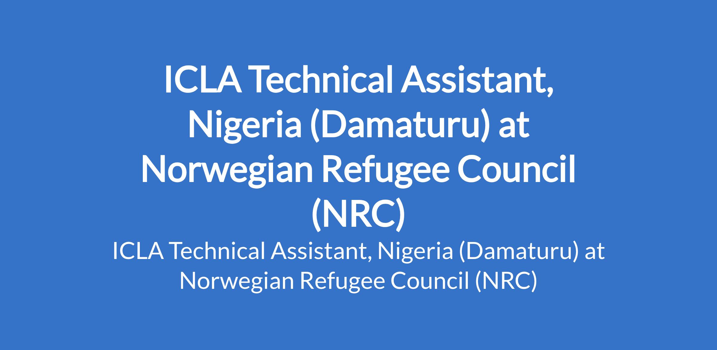 Norwegian Refugee Council (NRC) is recruiting to fill the position of: ICLA Technical Assistant, Nigeria. The position is located in Damaturu, Yobe State. Interested candidates should possess a University Degree in Law or Social Sciences from a recognized Nigerian university, a thorough knowledge of the application of Nigerian law in the displacement context, with work experience in the field of law (e.g., courts, attorney, or legal aid agencies) and humanitarian protection.