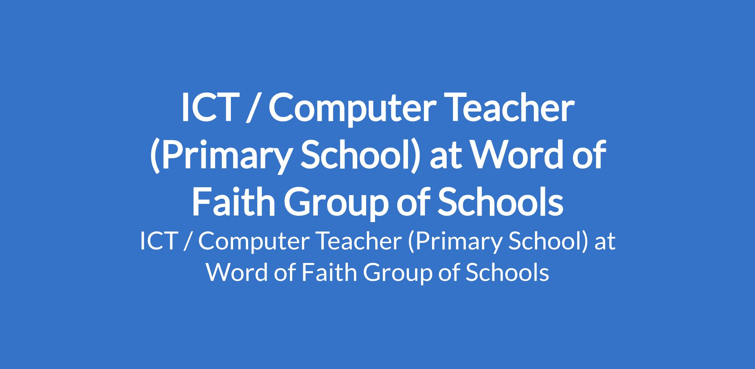 Word of Faith Group of Schools is recruiting to fill the position of: ICT / Computer Teacher (Primary School). The position is located in Abuja. Interested candidates should possess a B.Ed or relevant qualification in Education and must be duly certified by TRCN.