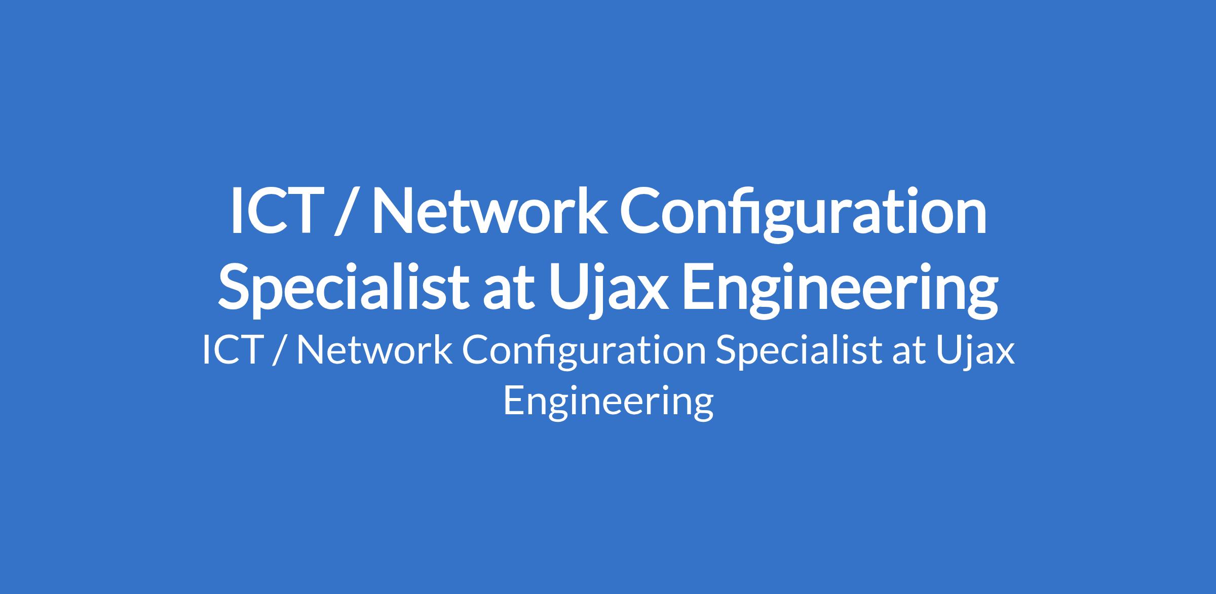 Ujax Engineering is recruiting to fill the position of: ICT / Network Configuration Specialist. The position is located in Abuja (FCT). Salary Range N100,000 - N150,000 / month. Interested candidates should possess an OND, HND, or Bachelors Degree in ICT, Computer Engineering, Electronics, or a related field.