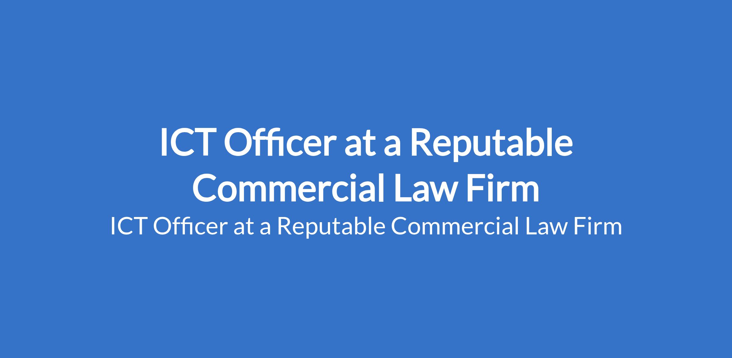 A Reputable Commercial Law Firm is recruiting to fill the position of: ICT Officer. Interested candidates should possess a minimum of Second Class Honours Lower Division Degree in Information and Communication Technology or Computer Science with general experience in both proactive monitoring of computer system, maintenance, and help desk support strategic, IT planning and consulting, Data management, backup, and disaster recovery, Hardware and Software.