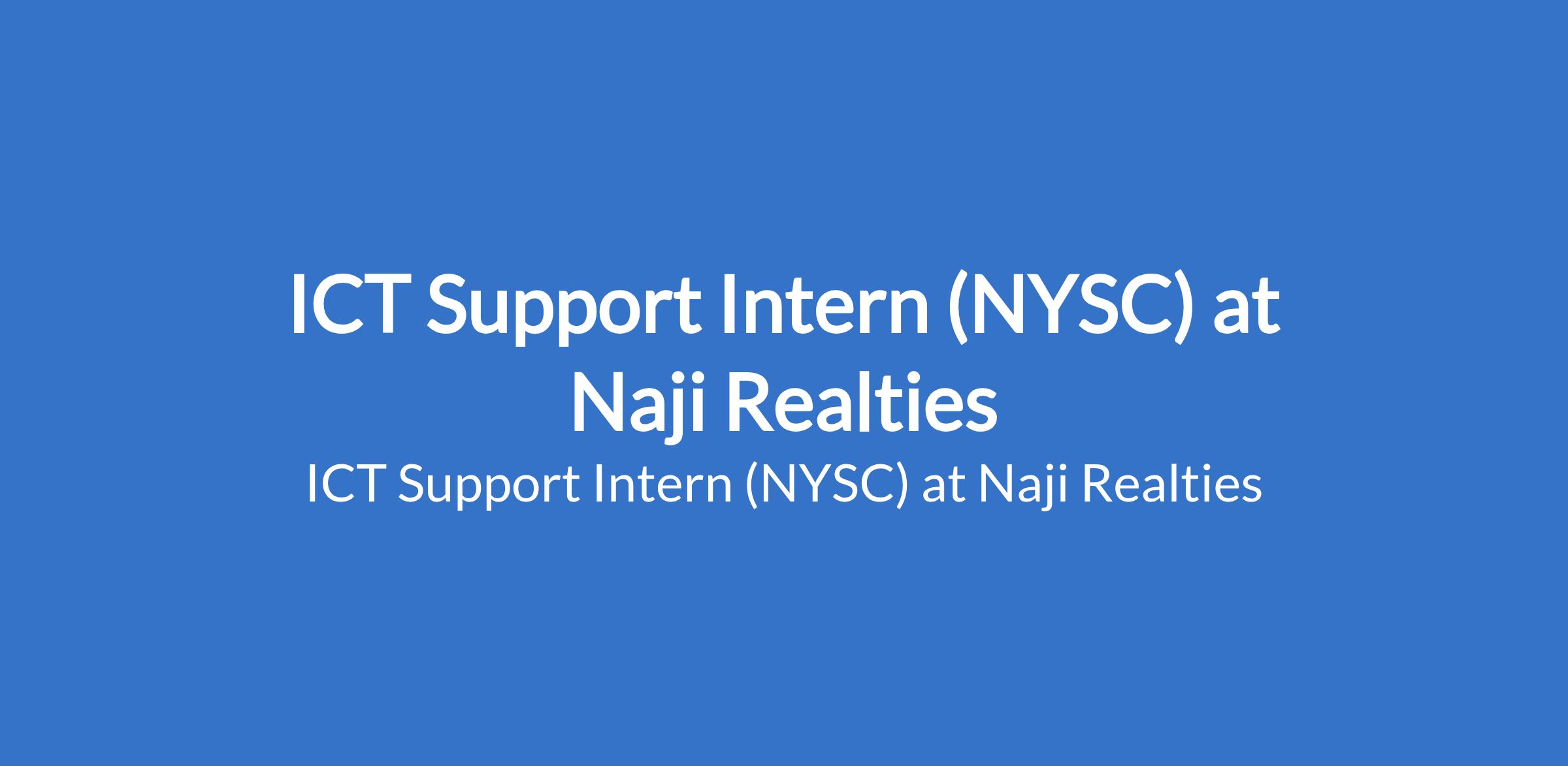 Naji Realties is recruiting to fill the position of: ICT Support Intern (NYSC). The position is located in Utako, Abuja (FCT). Salary: N50,000 - N800,000 per month. Interested candidates should possess a Bachelors Degree in Computer science, Electrical Engineering and other related fields with 2+ years of experience in IT support or a related field and must reside in Abuja preferably around Utako.