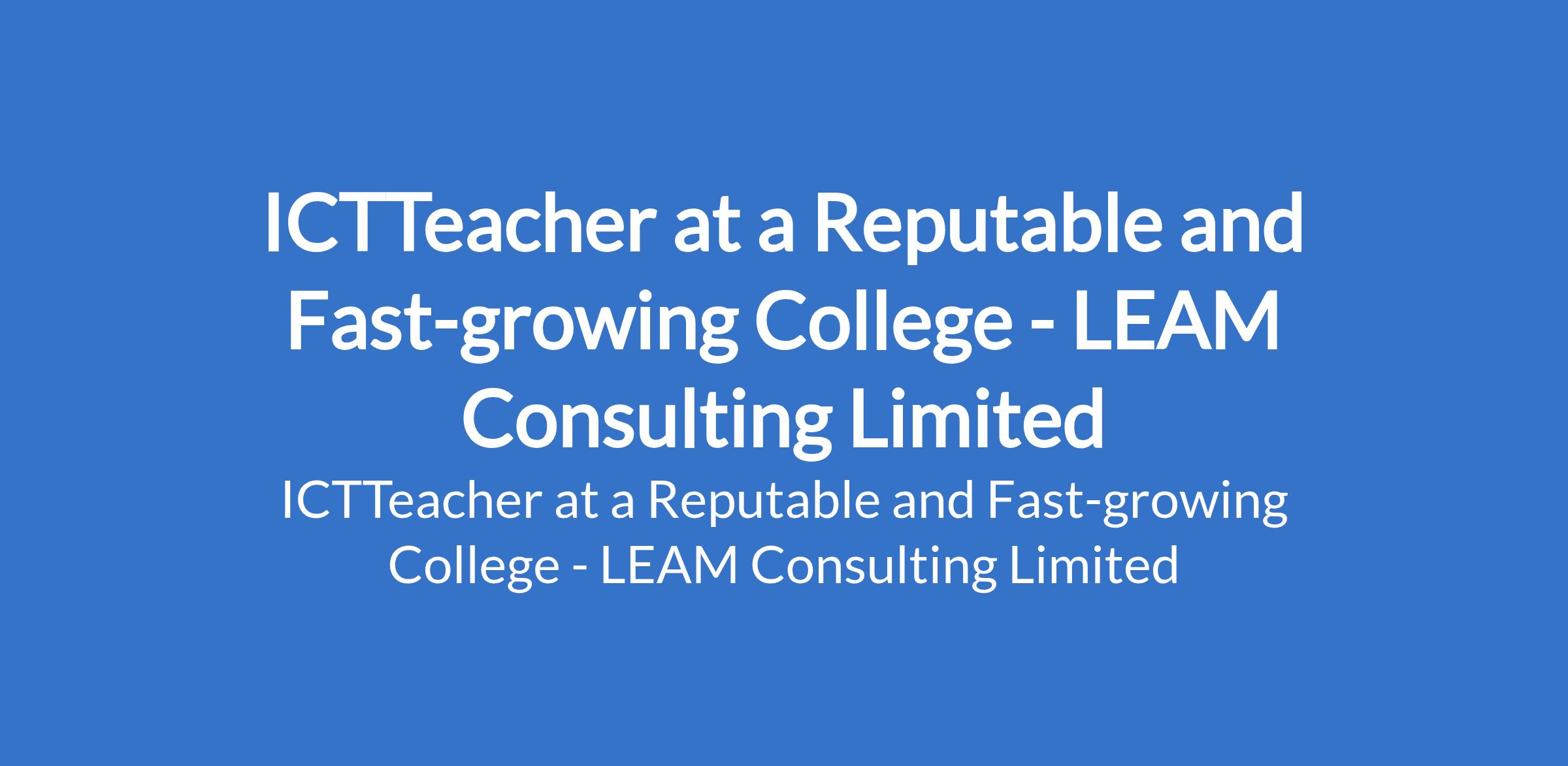 LEAM Consulting Limited - Our client, a reputable and fast-growing College is recruiting to fill the position of: ICTTeacher. The position is located in Akala Expressway, Ibadan - Oyo State. Salary: N55,000 N60,000 monthly. Interested candidates should possess relevant qualifications and must be dedicated, disciplined, and committed to academic excellence and character development.