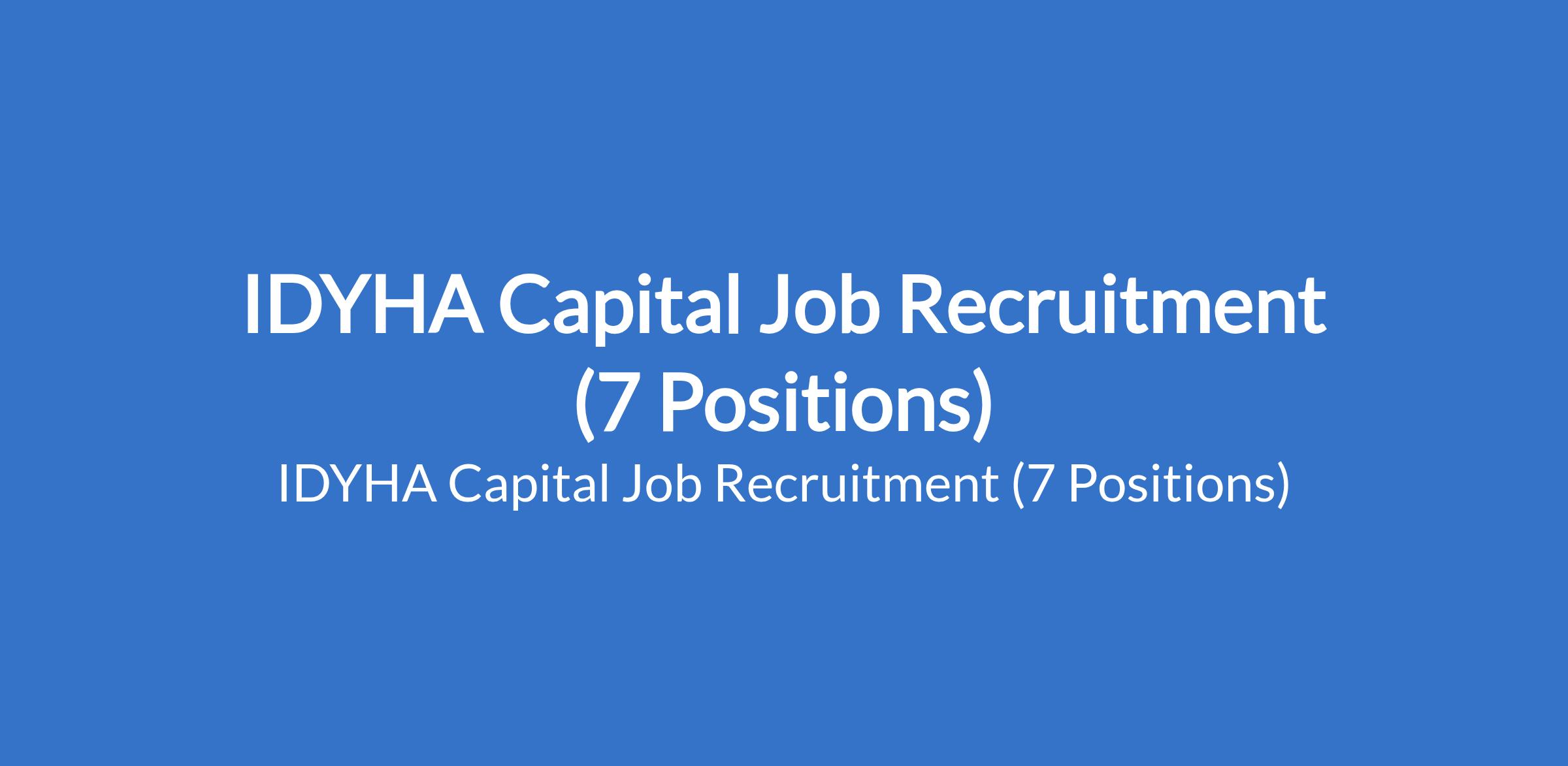 IDYHA Capital Job Recruitment (7 Positions)