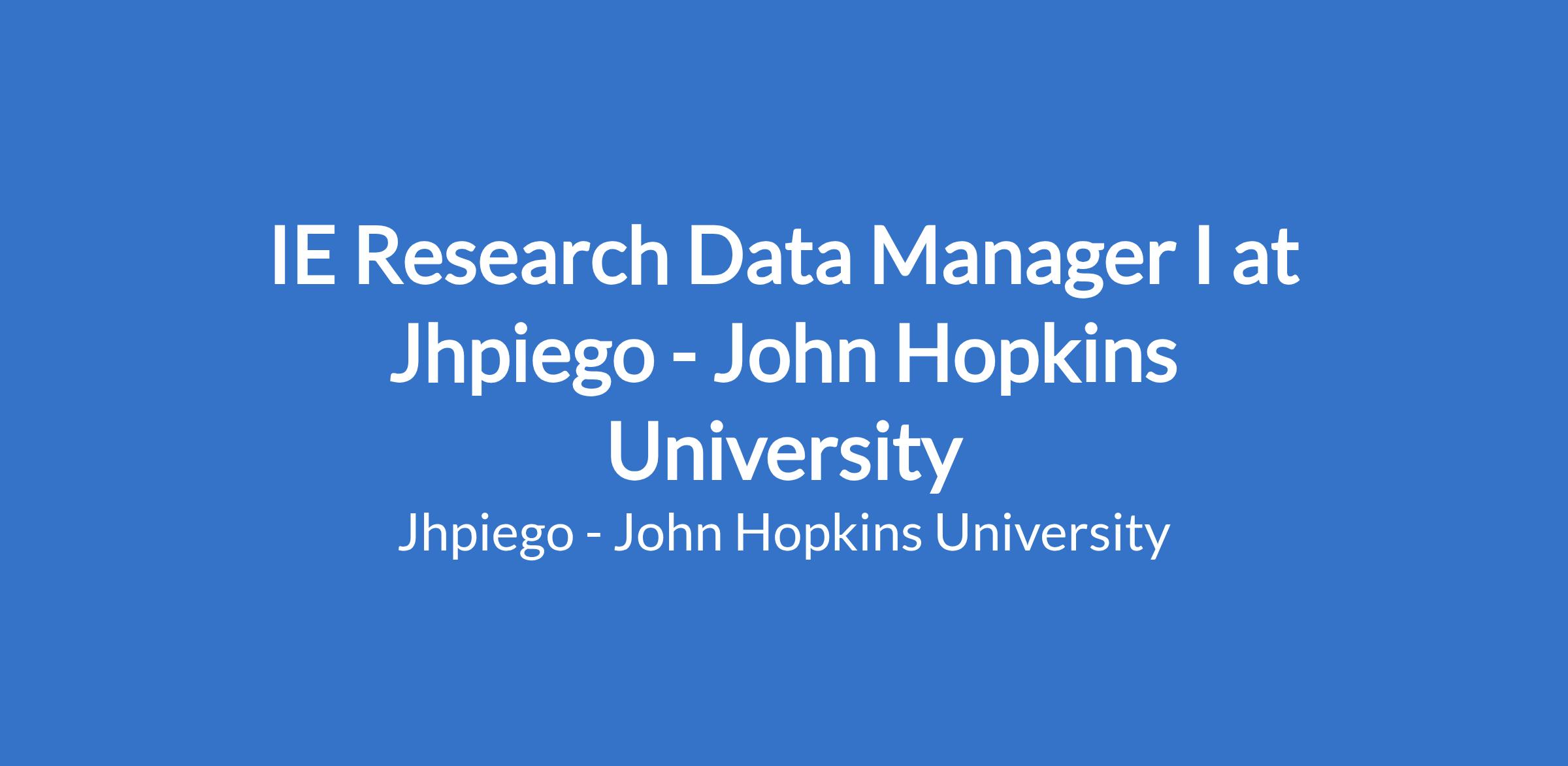 Jhpiego is seeking to hire a Research Data Manager 1, who will work on the design, management, and execution of all quantitative, monitoring and evaluation (MEL), and methodological components of the Impact Evaluation.