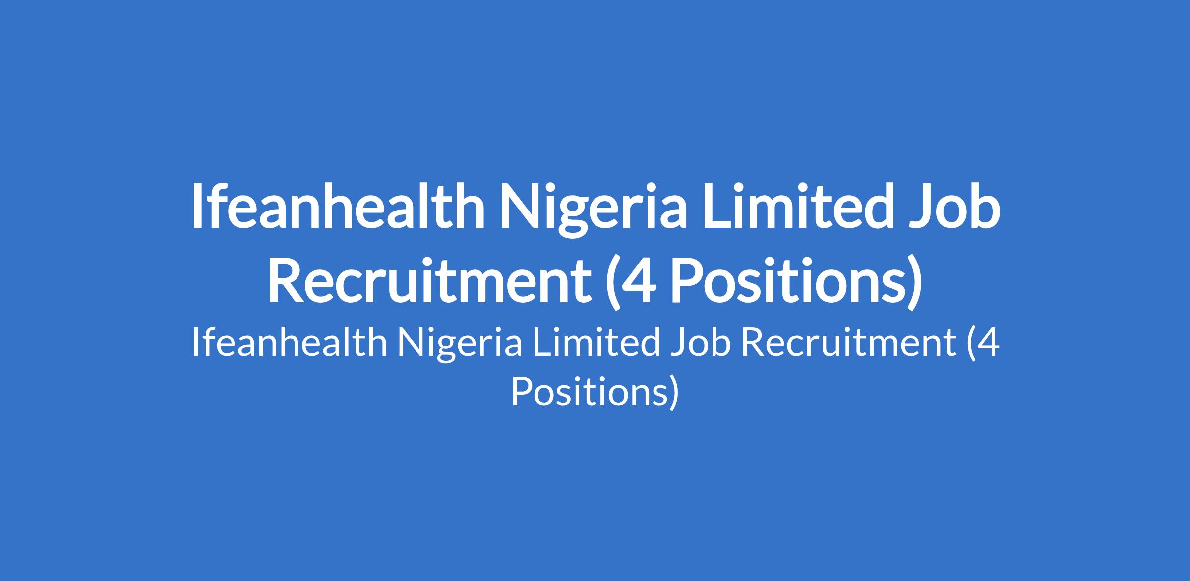 Ifeanhealth Nigeria Limited Job Recruitment (4 Positions)
