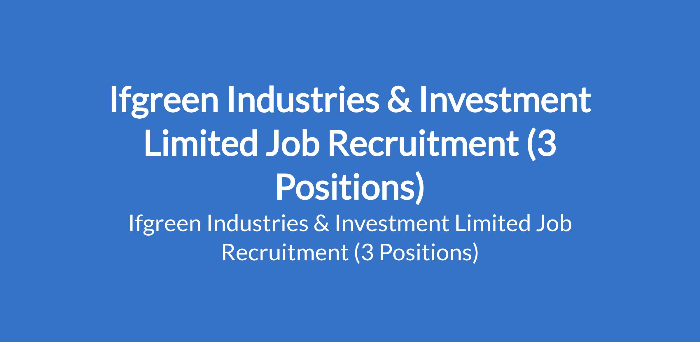 Ifgreen Industries & Investment Limited Job Recruitment (3 Positions)