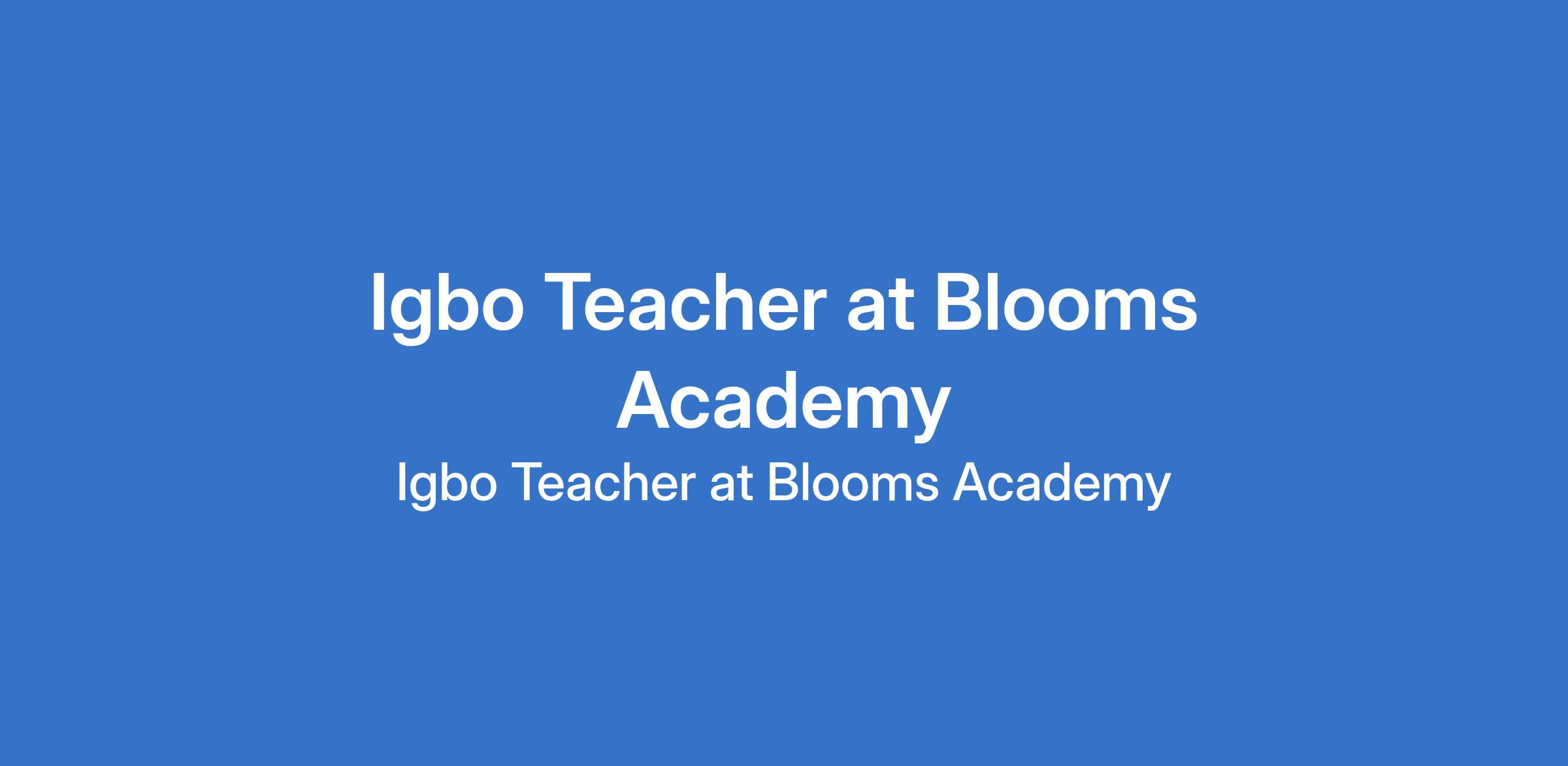 Blooms Academy is recruiting to fill the position of: Igbo Teacher. The position is located in Abuja (FCT). Interested candidates should possess a Bachelors Degree in Igbo, Linguistics, Languages or a related field with proven fluency in spoken and written Igbo.
