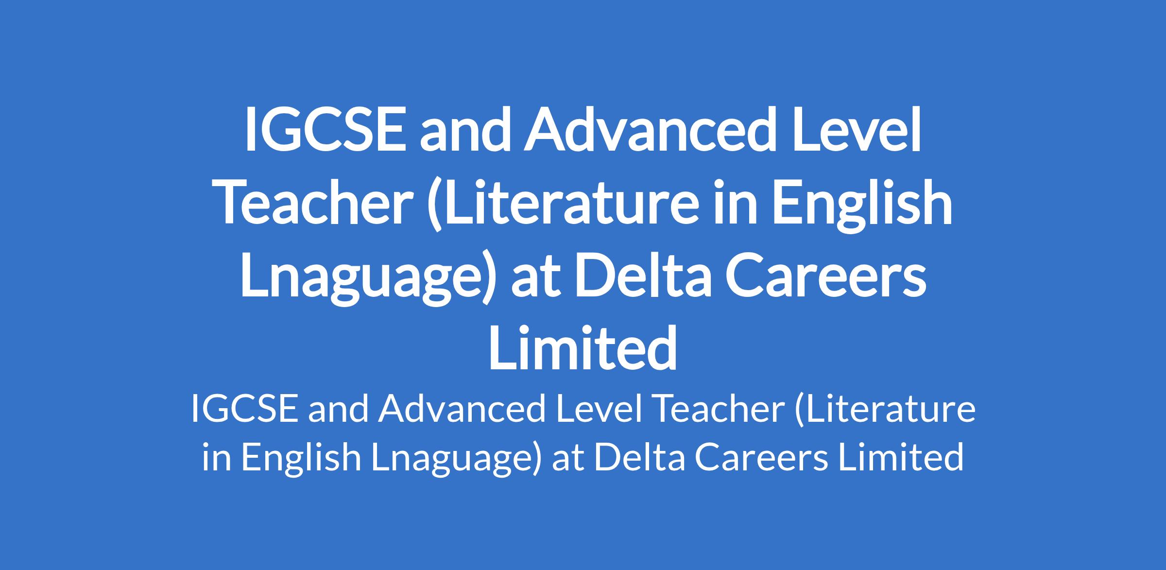 Delta Careers Limited is recruiting to fill the position of: IGCSE and Advanced Level Teacher (Literature in English Language). The position is located in Warri, Delta State. Interested candidates should be well experienced subject teachers in IGCSE and Cambridge.