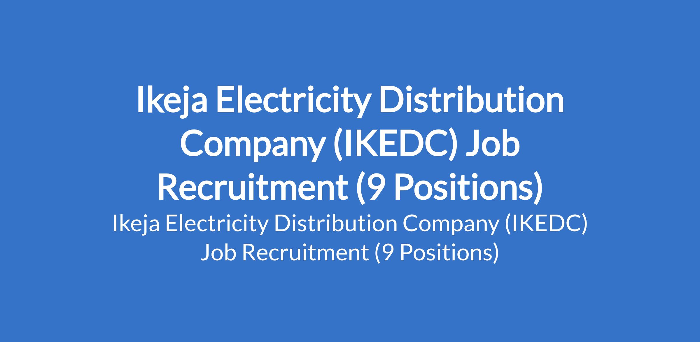 Ikeja Electricity Distribution Company (IKEDC) is recruiting suitably qualified candidates to fill the following positions in Lagos State: Distribution Substation Operator (DSO), People Operations Specialist, Treasury / Accounts Officer, Human Resource Generalist, Technical Hub Manager, Reporting Regulatory Matters and Tariffs Specialist, Software Developer, Financial Control Specialist, and Inventory Planning and Warehousing Lead.