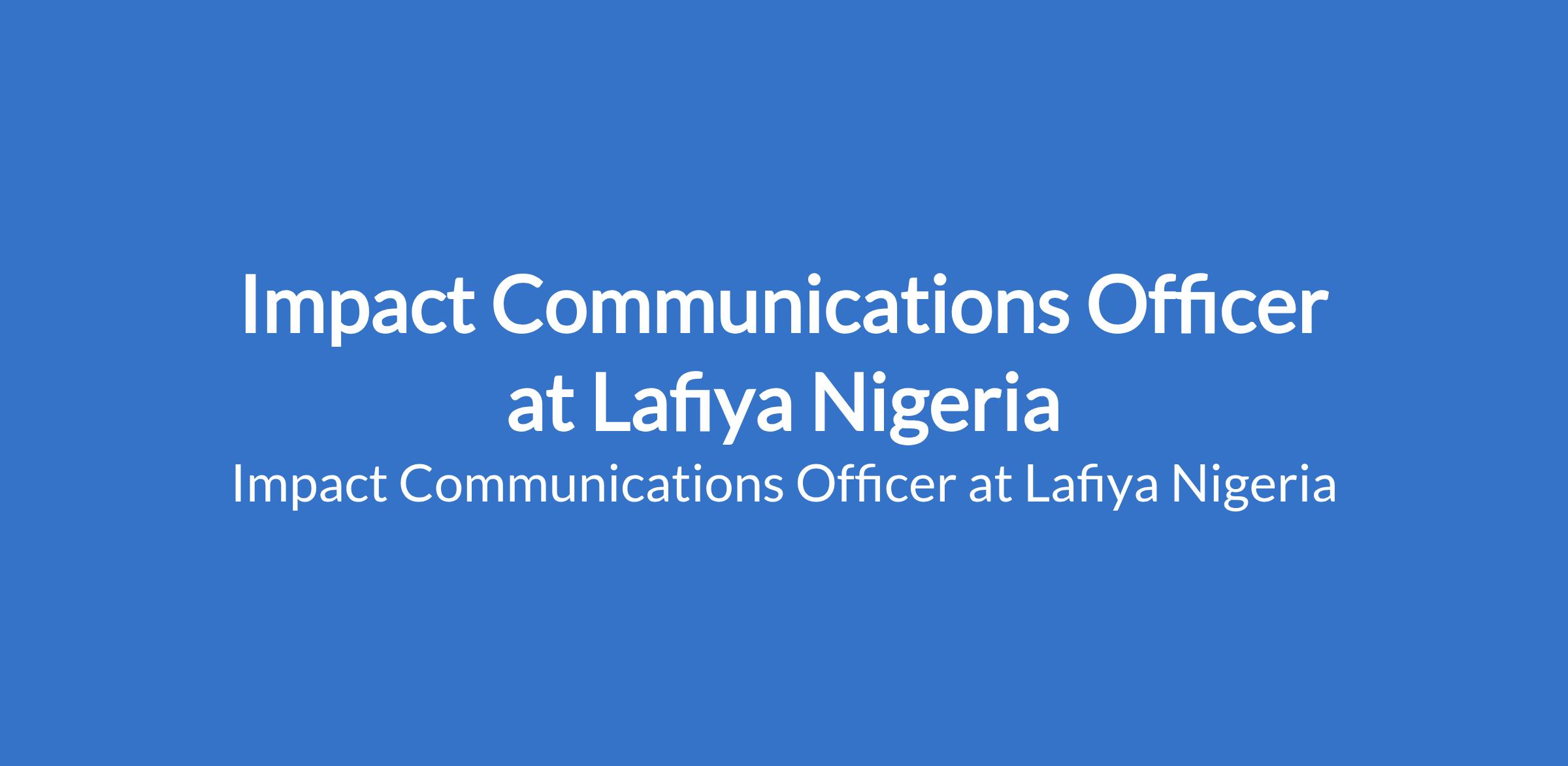 Impact Communications Officer at Lafiya Nigeria