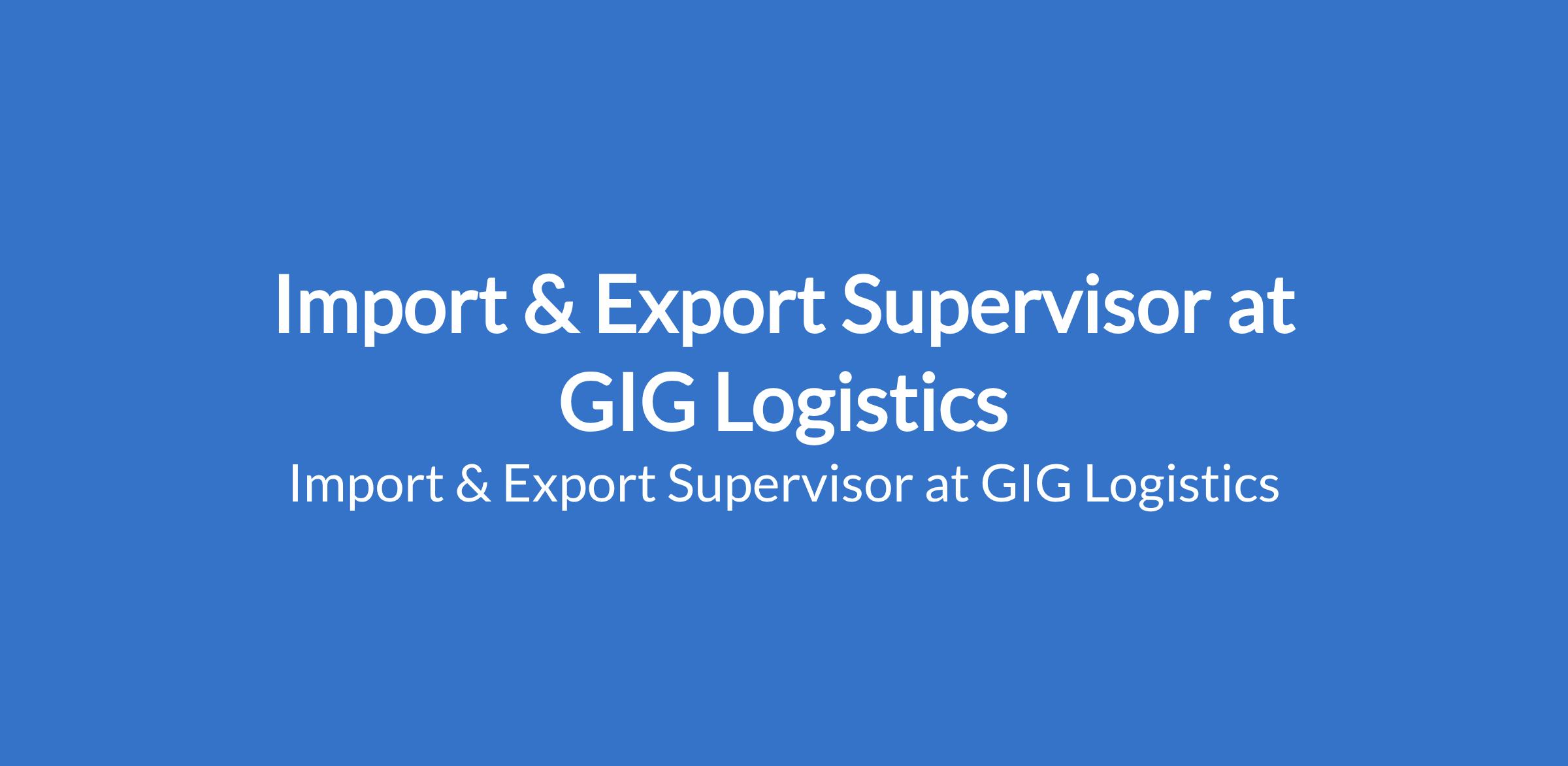 GIG Logistics is recruiting to fill the position of: Import & Export Supervisor. The position is located in Lagos State. Interested candidates should possess relevant qualifications.