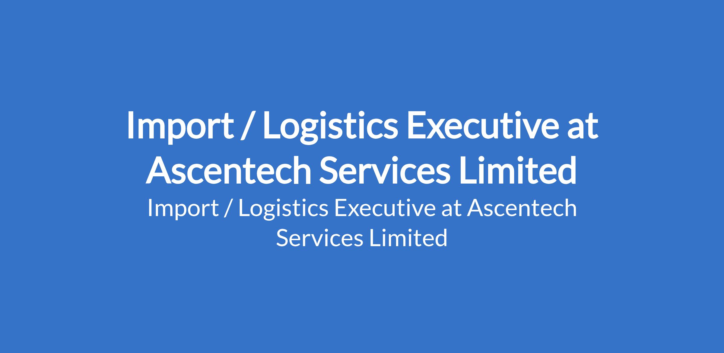 Ascentech Services Limited is recruiting to fill the position of: Import / Logistics Executive. The position is located in Apapa, Lagos State. Interested candidates should possess a Bachelors Degree with a minimum of 5 years experience in Import Logistics / Clearing & Forwarding.