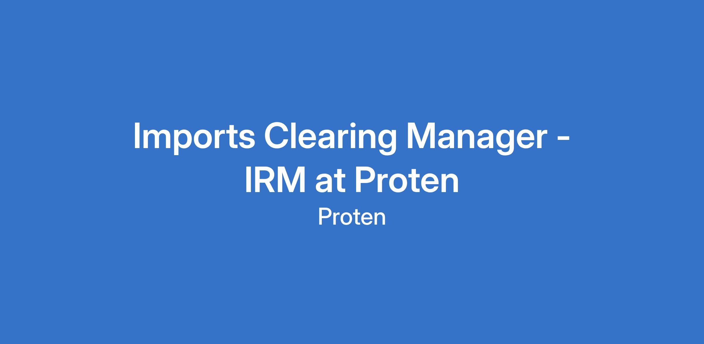 Imports Clearing Manager - IRM at Proten