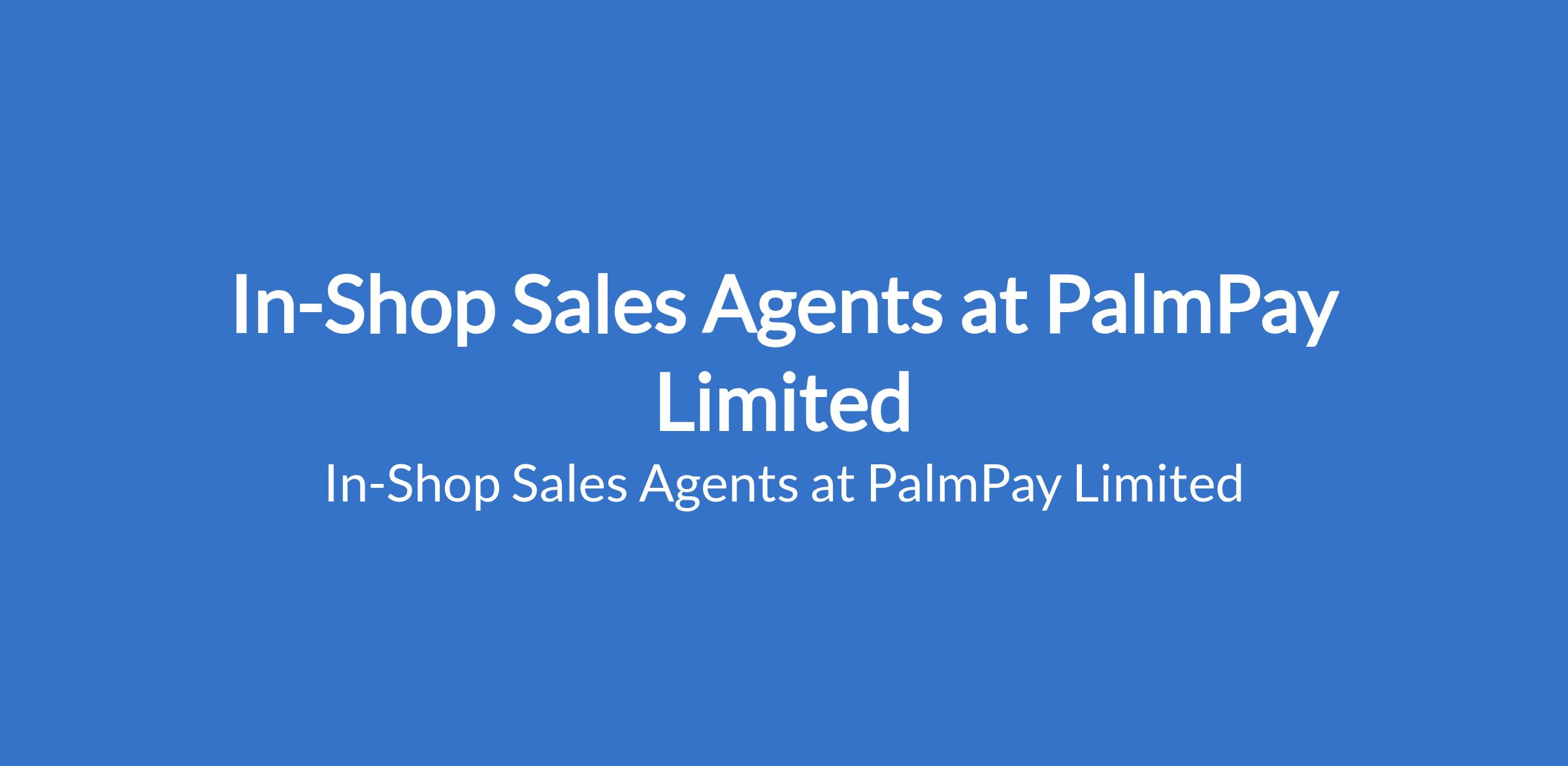 In-Shop Sales Agents at PalmPay Limited
