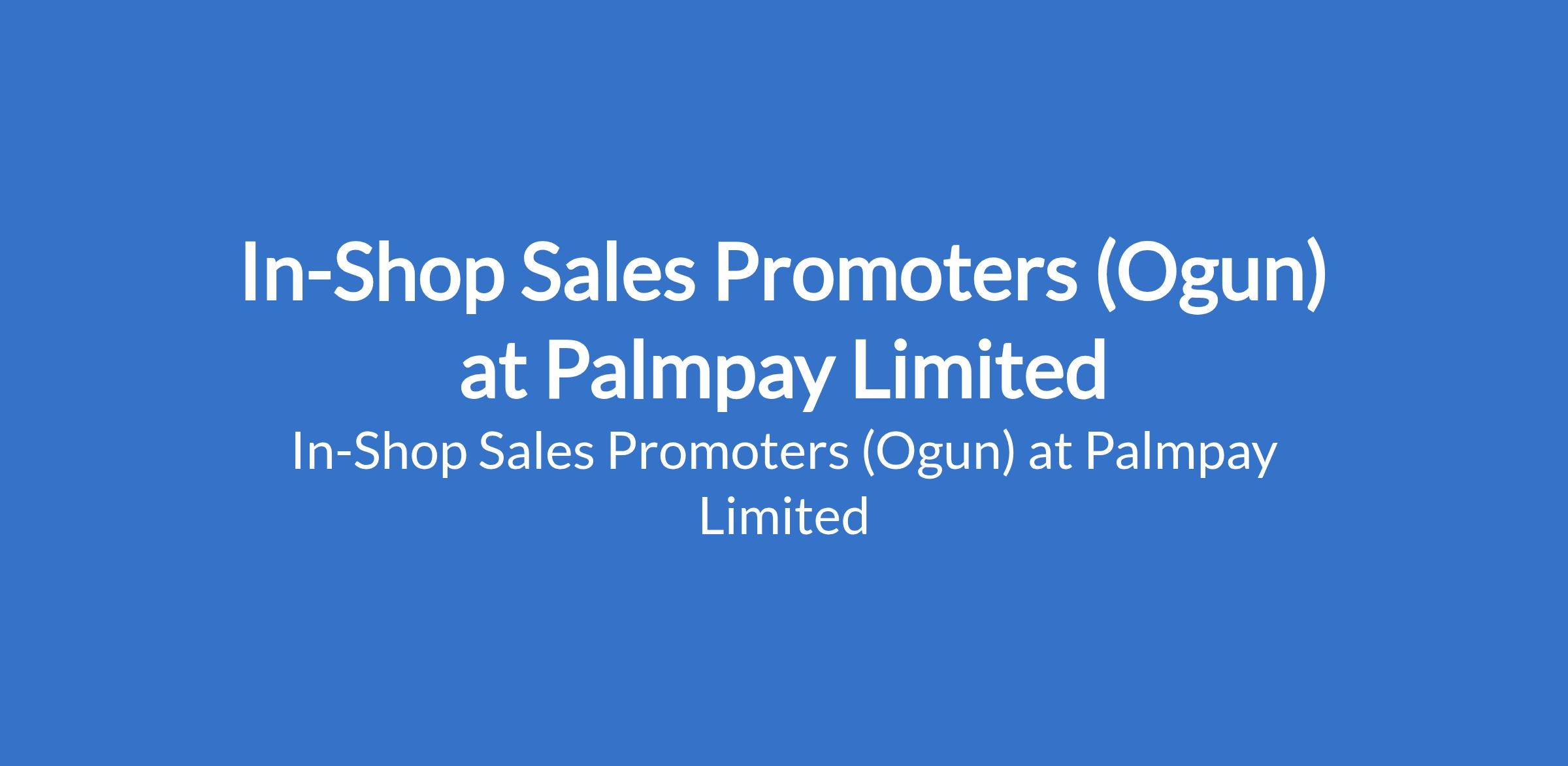 Palmpay Limited is recruiting to fill the position of: In-Shop Sales Promoter. The position is located in Ifo, Idiroko, Atan - Ogun State. Salary: N70,000 / Month. Interested candidates should possess a minimum of an OND, NCE, or equivalent qualification with prior experience in sales, field marketing, retail banking, or telecom product sales.