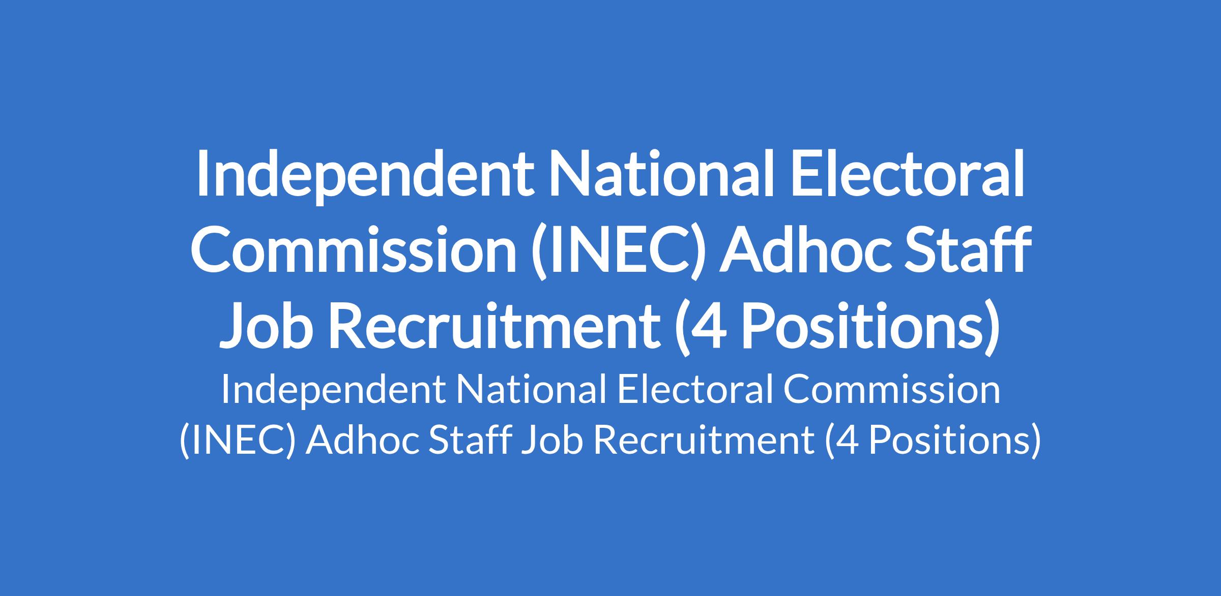 The Independent National Electoral Commission (INEC) invites applications from suitable candidates to fill the following positions in Ekiti State: Supervisory Presiding Officer, Presiding Officer (PO) / Assistant Presiding Officer (APO), Registration Area Center (RAC) Manager, and Registration Area Technician - RATECH.