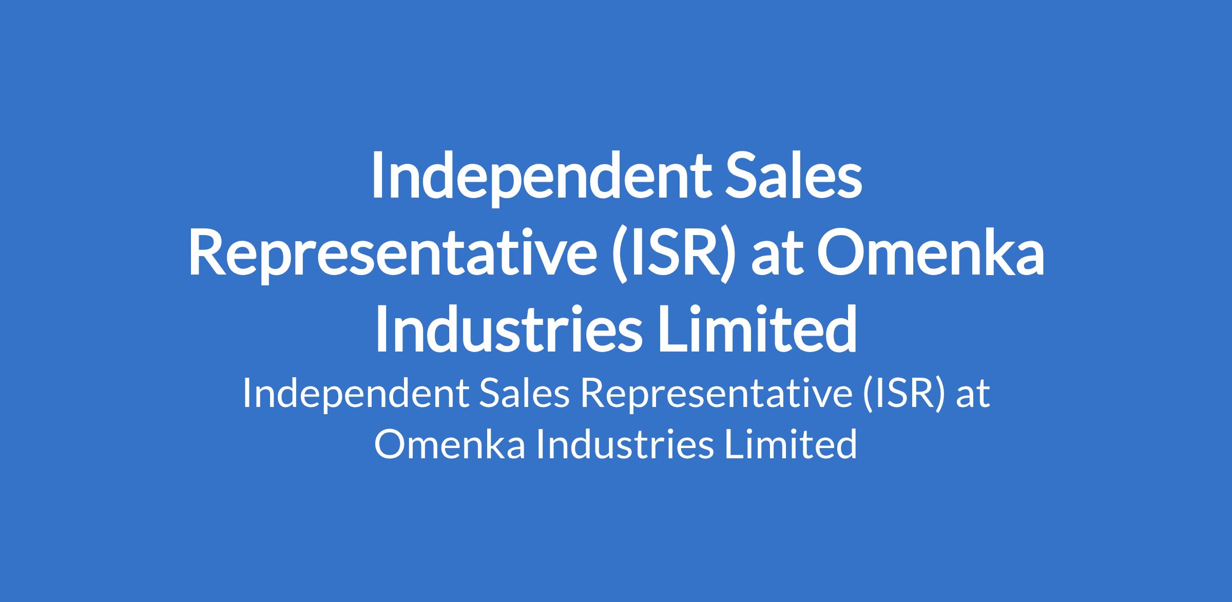 Independent Sales Representative (ISR) at Omenka Industries Limited