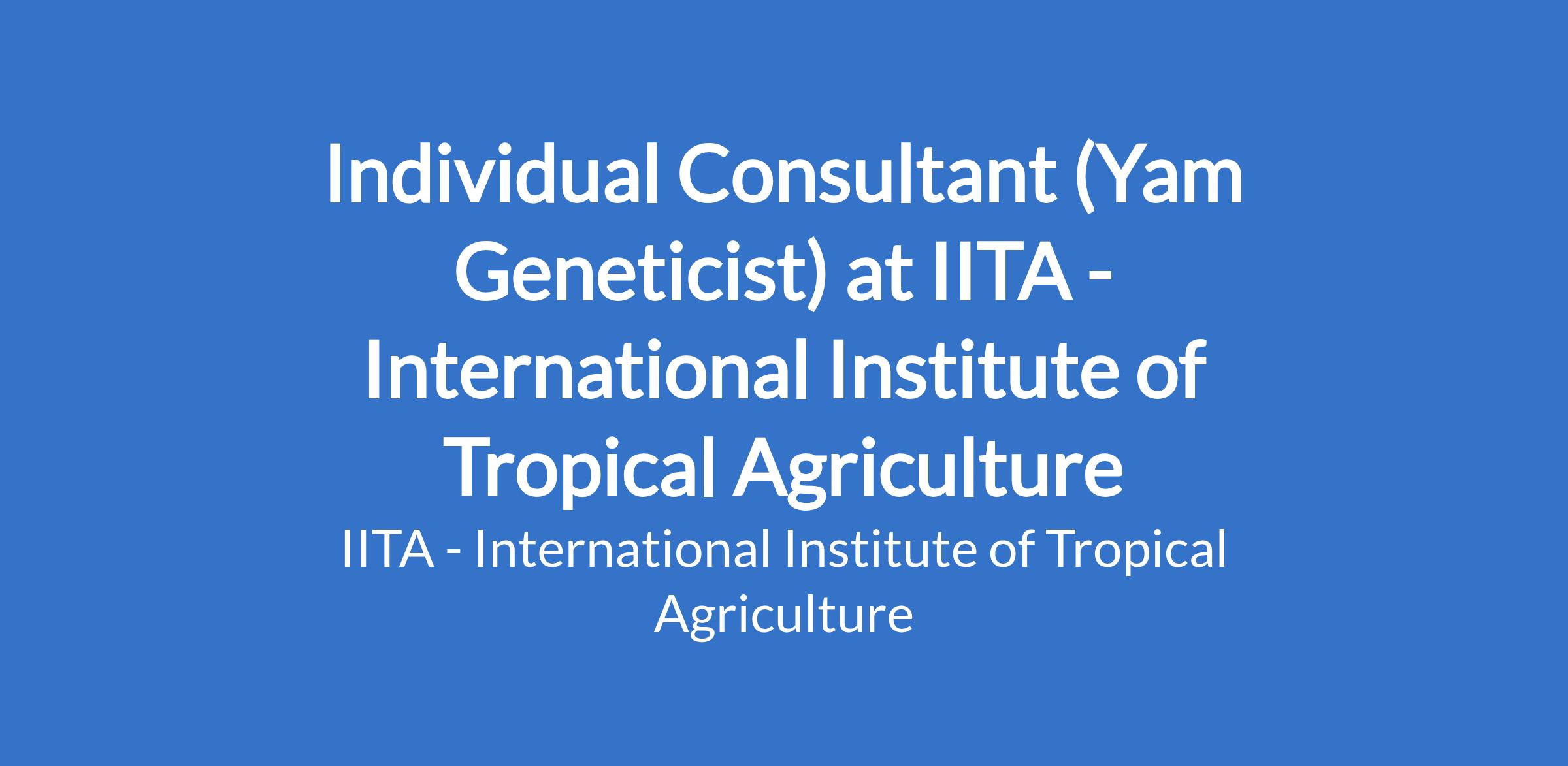 The International Institute of Tropical Agriculture (IITA) is seeking to engage the services of an Individual Consultant to support the development and application of advanced analytical tools for accelerating genetic gain in yam (Dioscorea spp.).